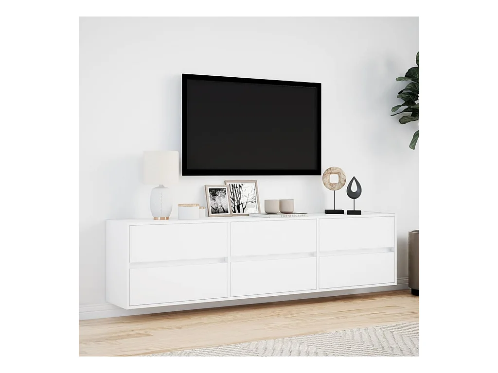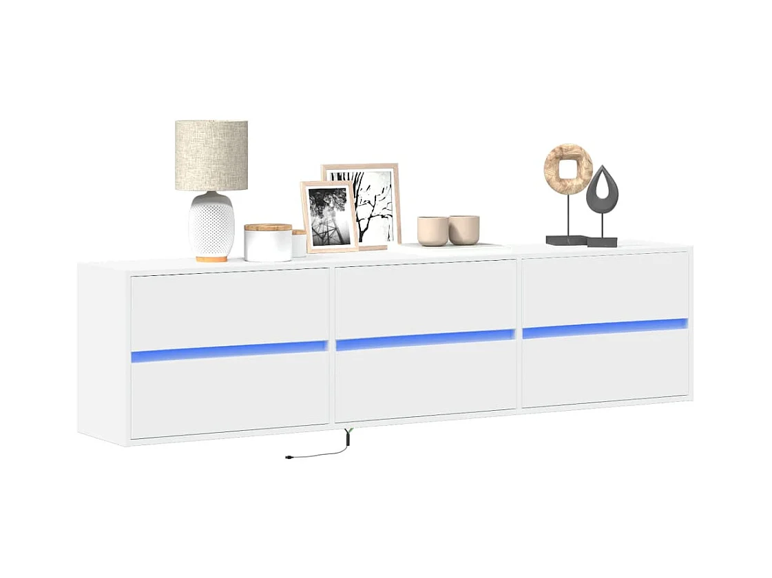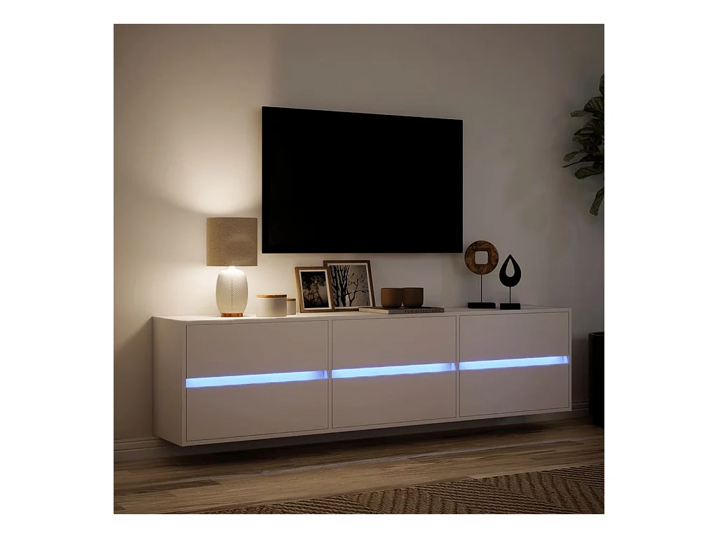 Meuble TV mural avec LED blanc 180x31x45 cm