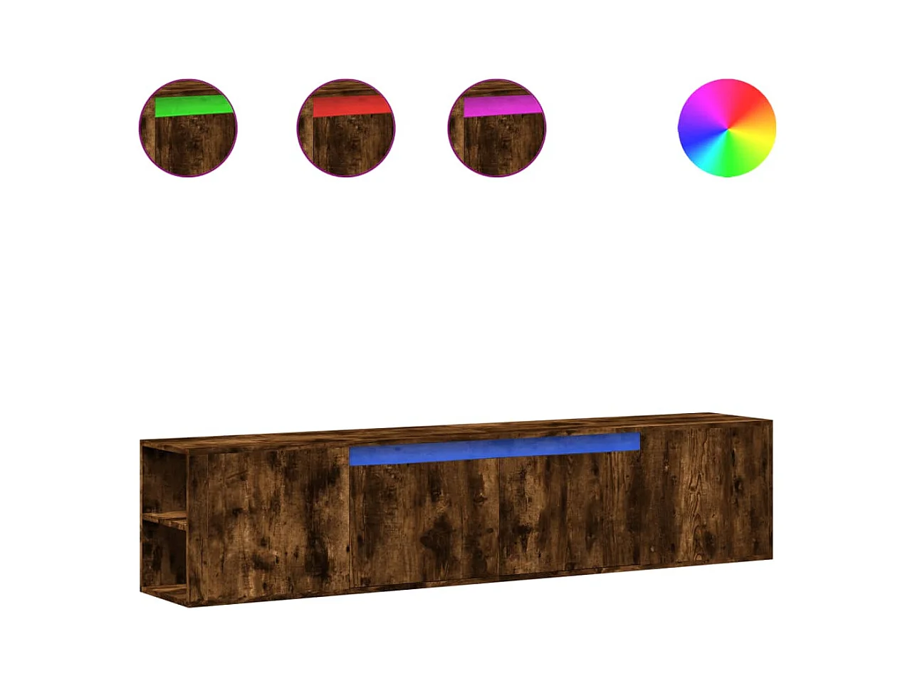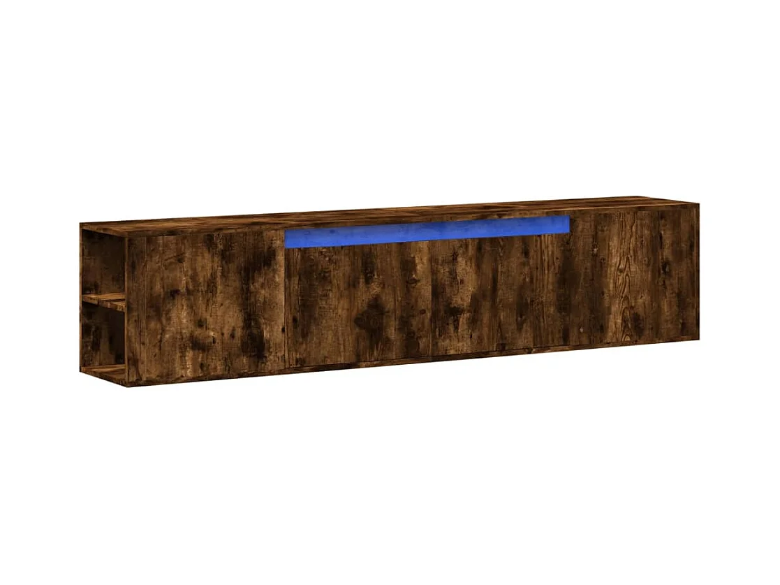 Meuble TV mural avec LED chêne fumé 180x31x39,5 cm