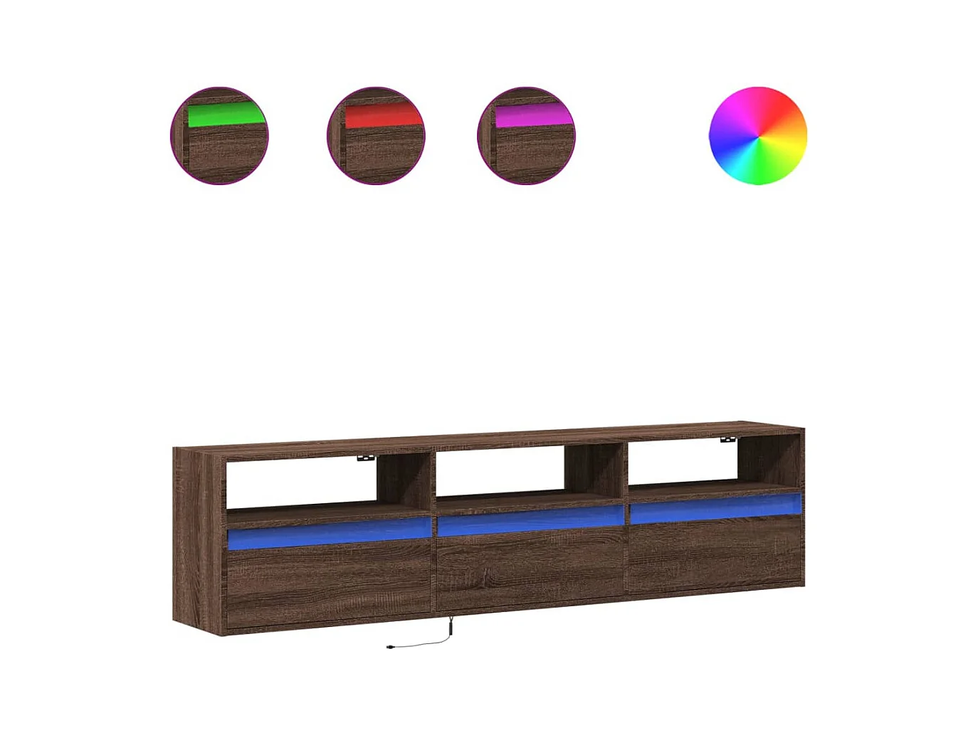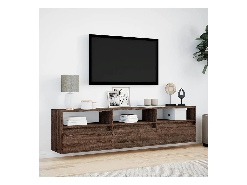 Meuble TV mural avec LED chêne marron 180x31x45 cm