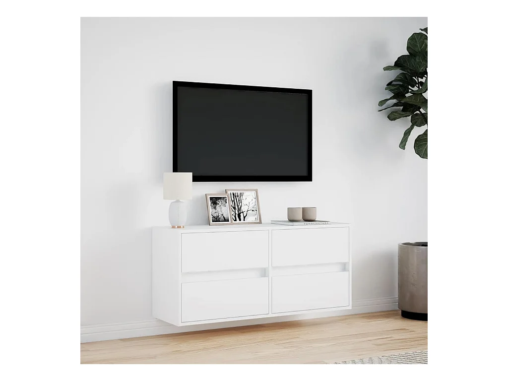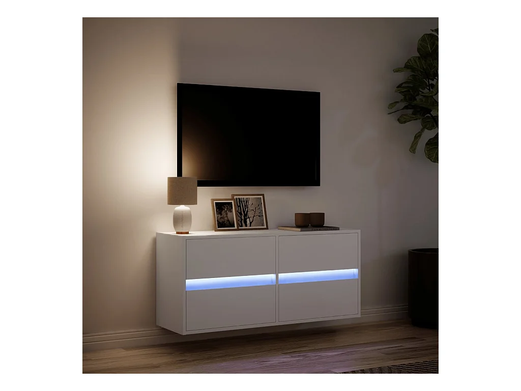 Meuble TV mural avec lumières LED blanc 100x31x45 cm