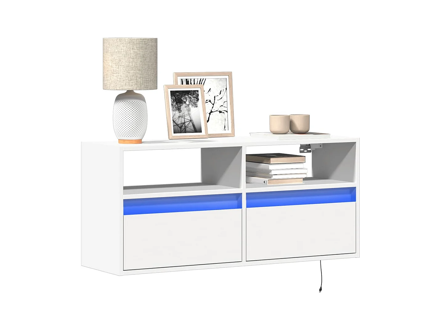 Meuble TV mural avec lumières LED blanc 100x31x35 cm