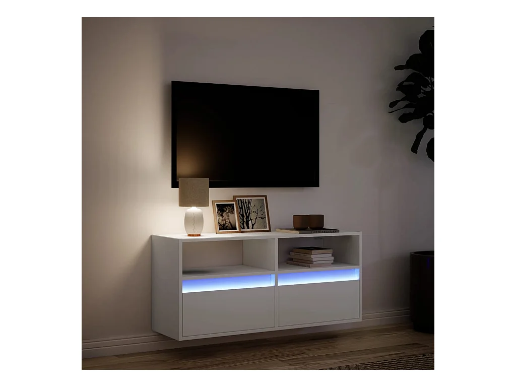Meuble TV mural avec lumières LED blanc 100x31x45 cm