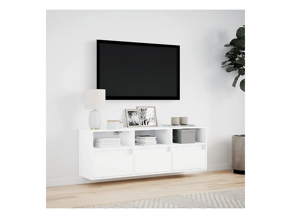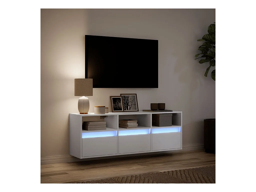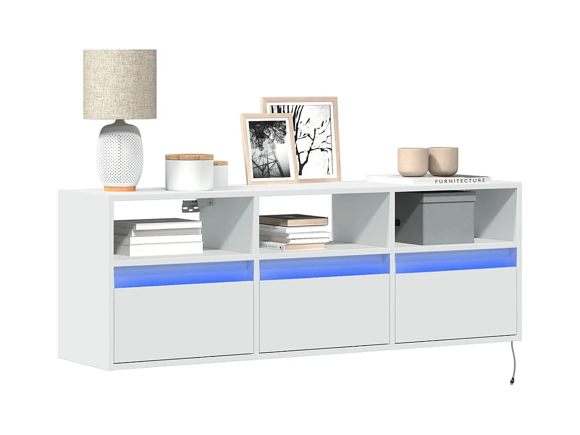 Meuble TV mural avec lumières LED blanc 130x31x45 cm