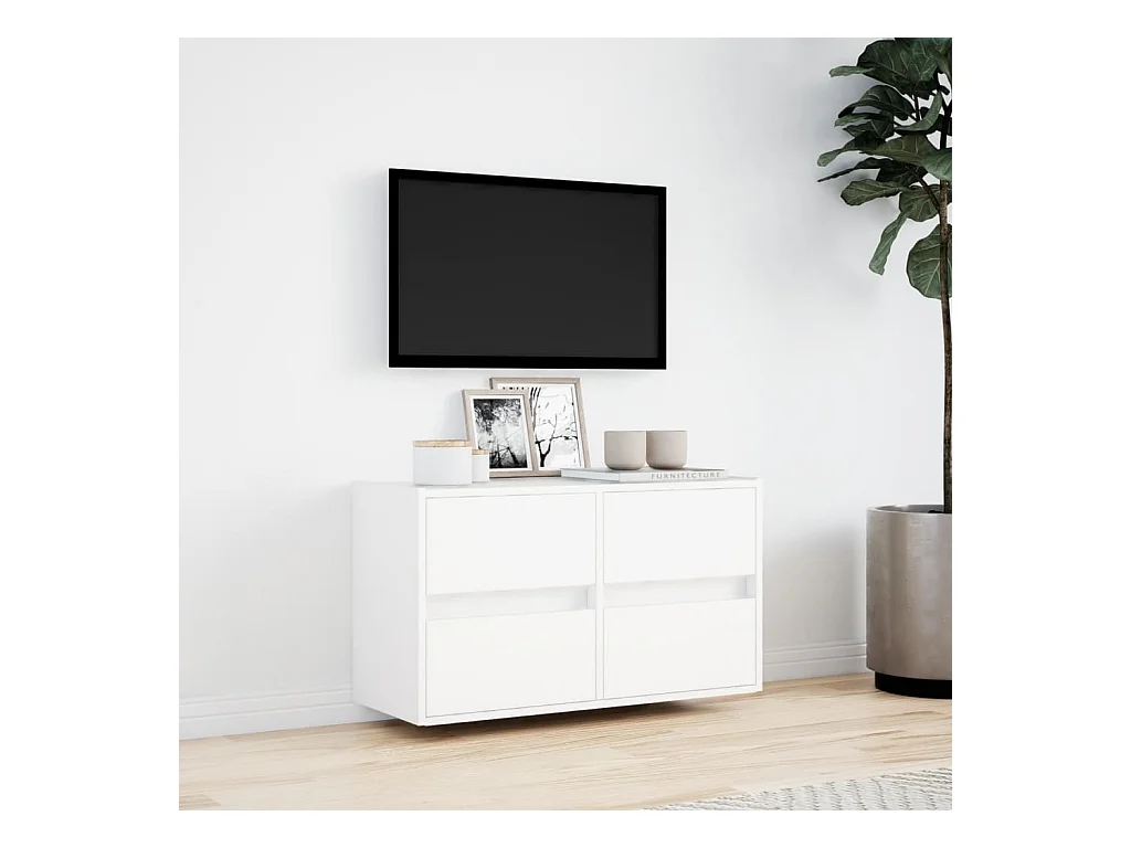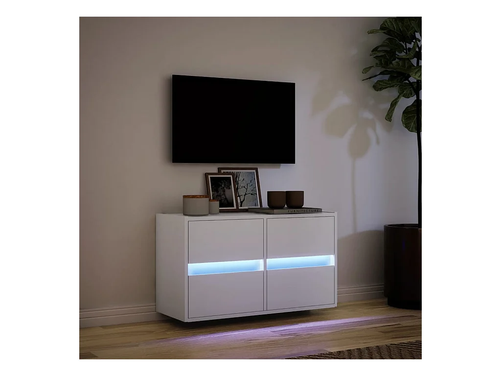 Meuble TV mural avec lumières LED blanc 100x31x45 cm