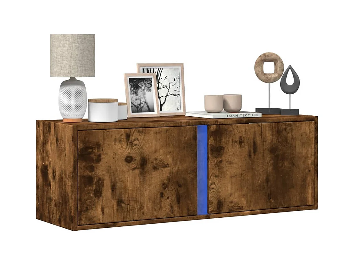 Meuble TV mural avec lumières LED chêne fumé 100x31x45 cm