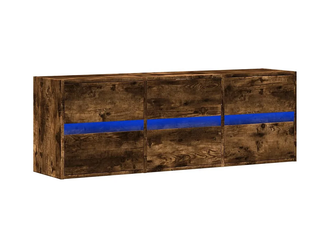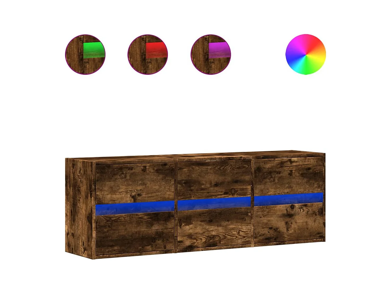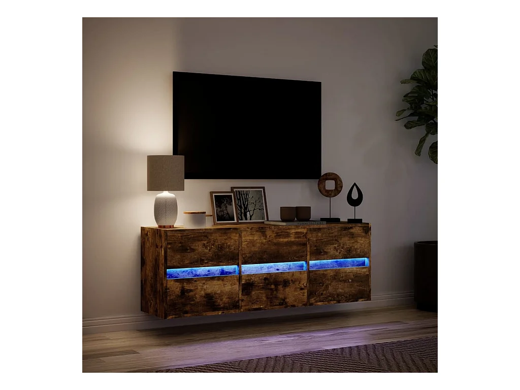Meuble TV mural avec lumières LED chêne fumé 130x31x45 cm
