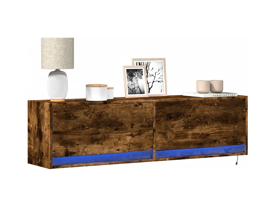 Meuble TV mural avec lumières LED chêne fumé 140x31x38 cm