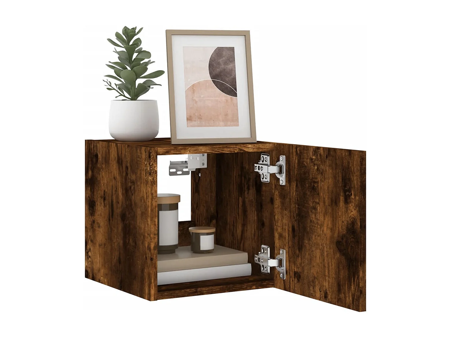 Meuble TV mural avec lumières LED chêne fumé 30,5x35x30 cm