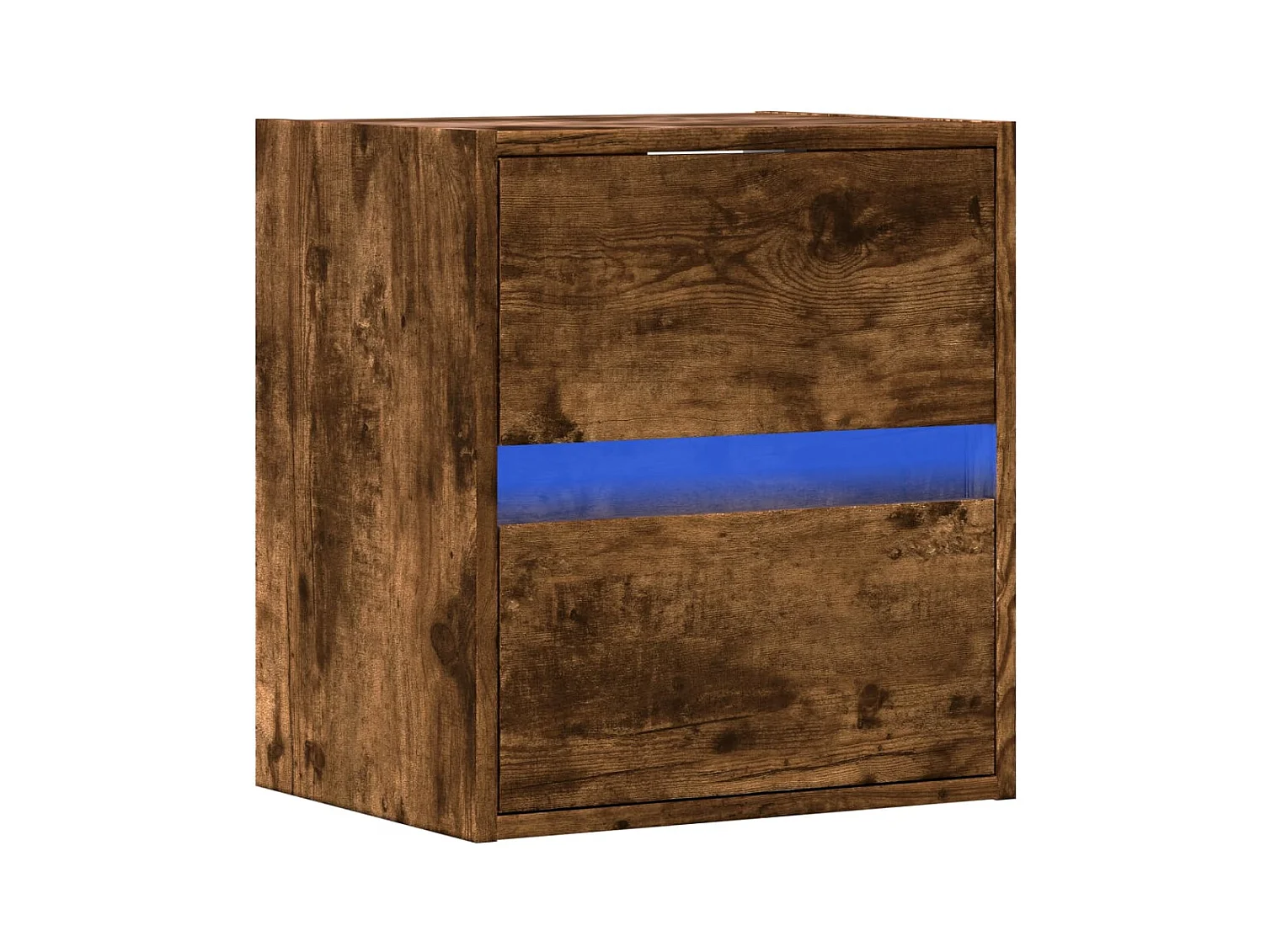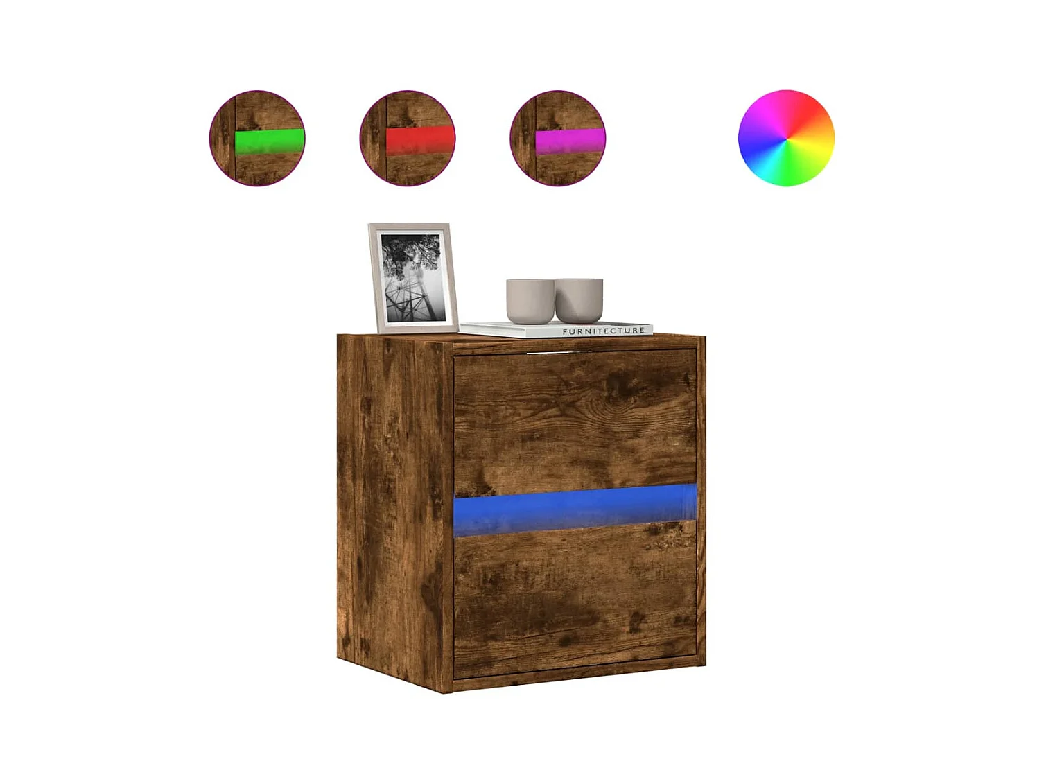 Meuble TV mural avec lumières LED chêne fumé 41x31x45 cm