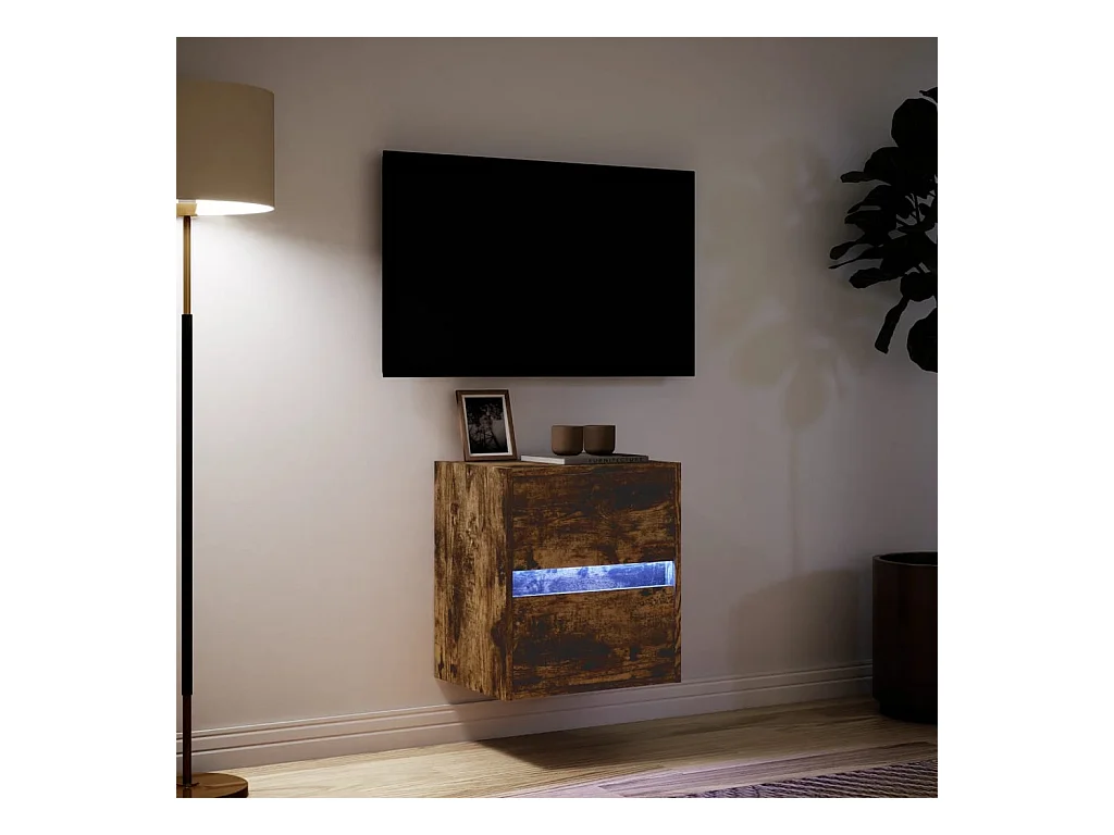 Meubles TV muraux et lumières LED 2 pièces chêne fumé 41x31x45 cm