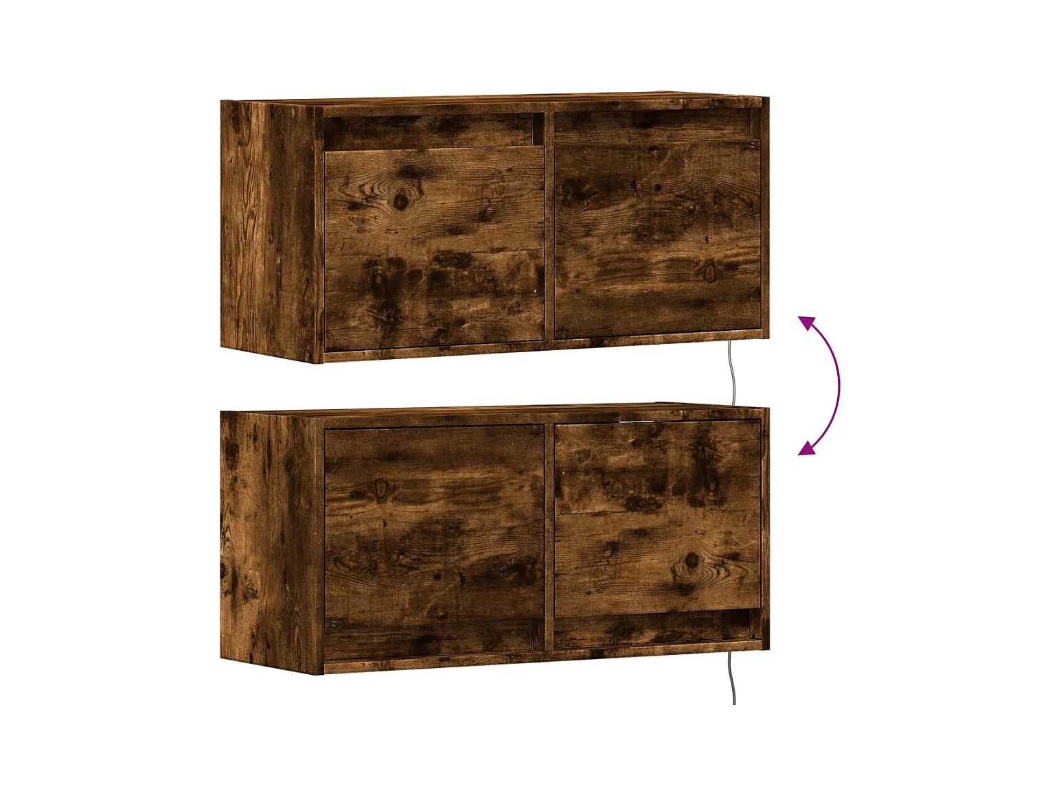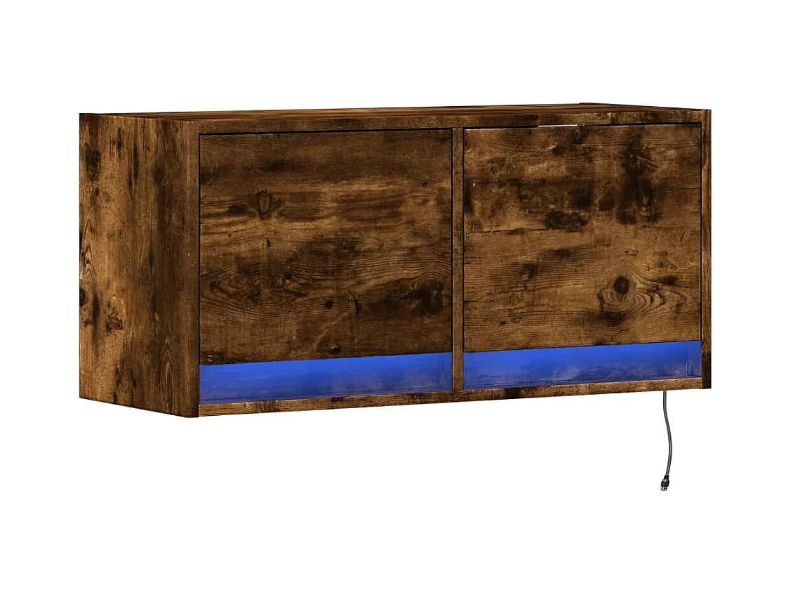 Meuble TV mural avec lumières LED chêne fumé 80x31x45 cm