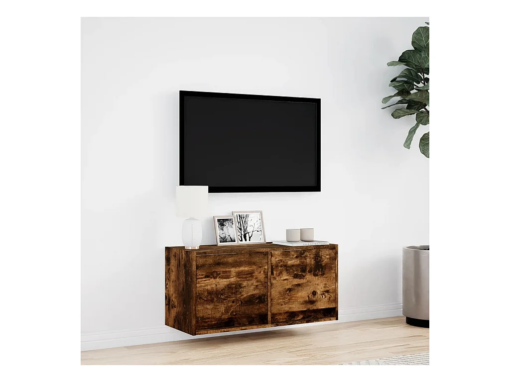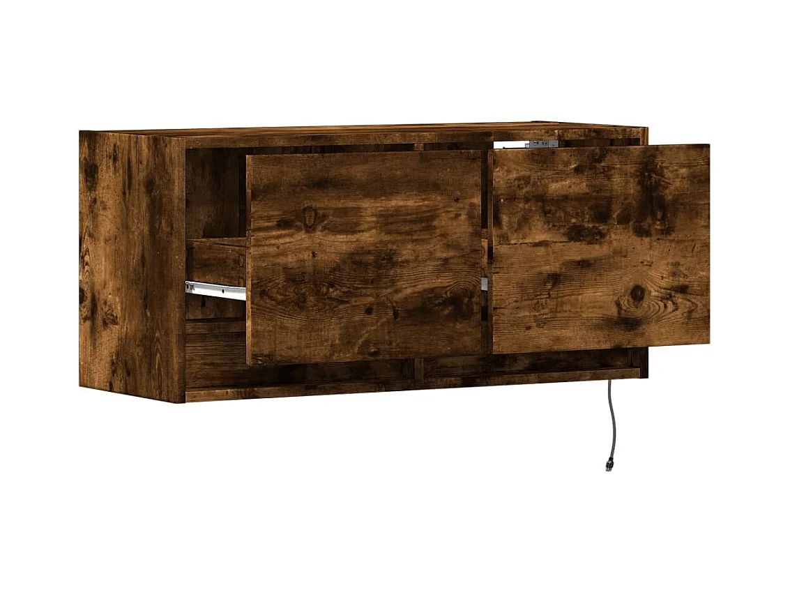 Meuble TV mural avec lumières LED chêne fumé 80x31x35 cm