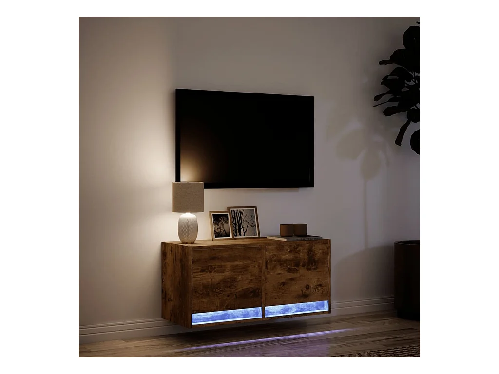 Meuble TV mural avec lumières LED chêne marron 80x31x45 cm