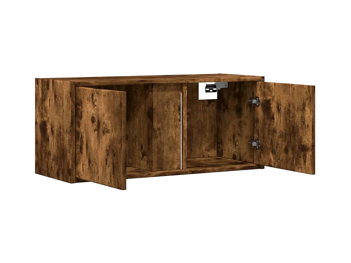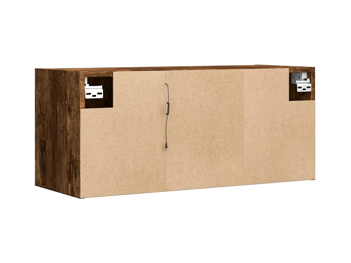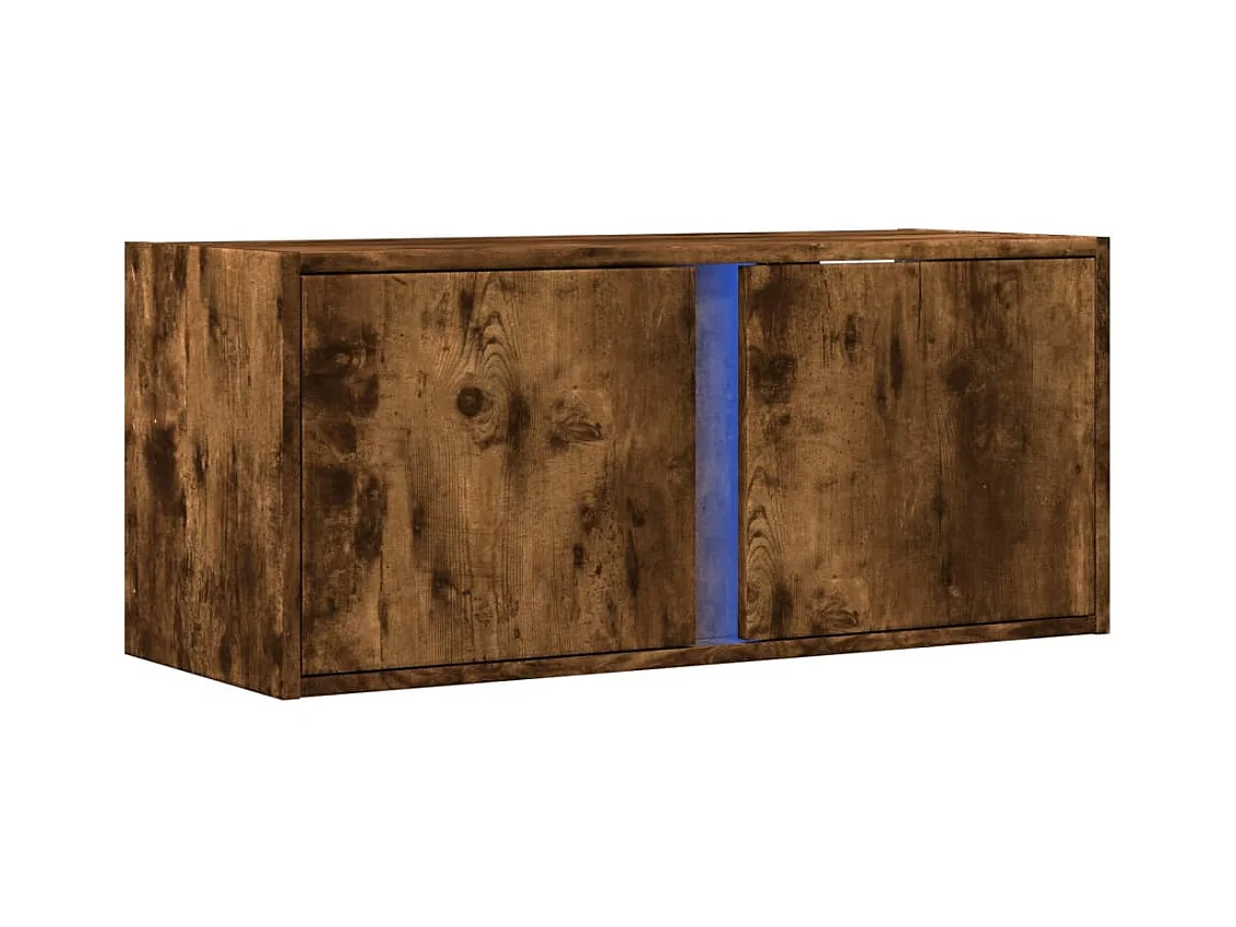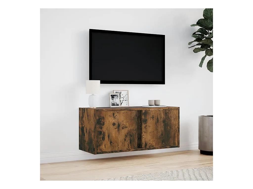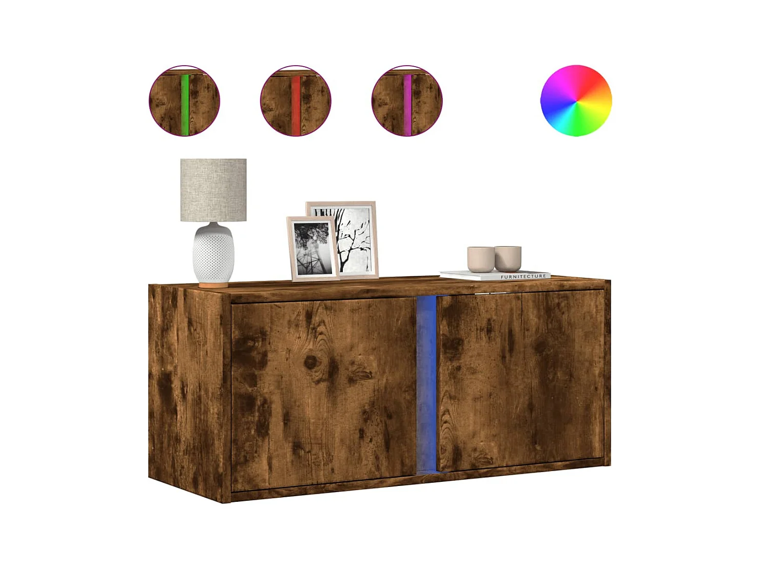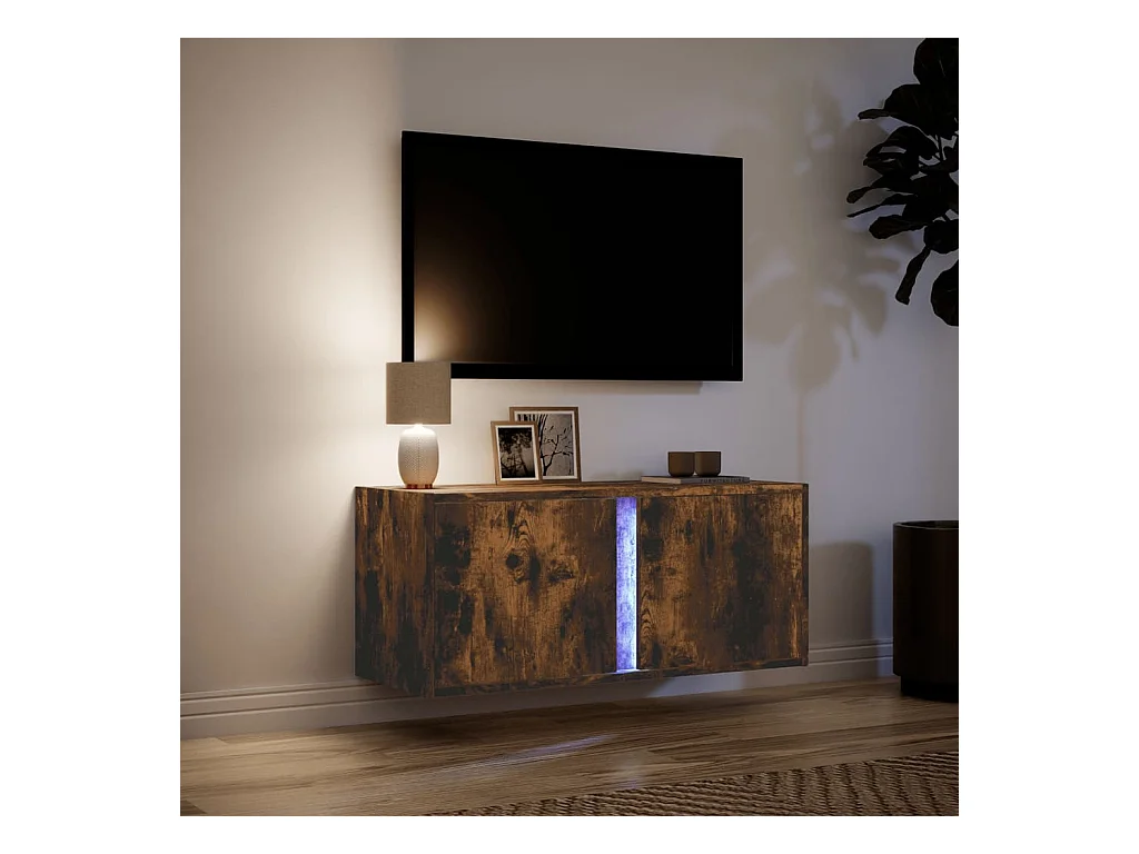 Meuble TV mural avec lumières LED chêne fumé 80x31x45 cm