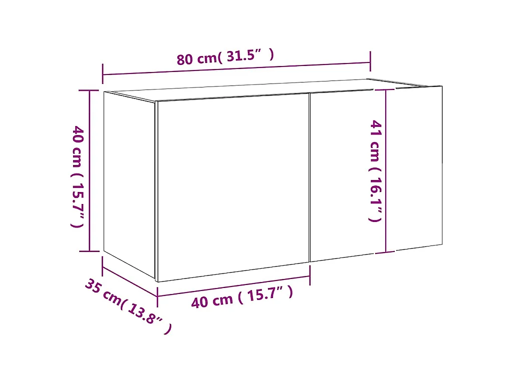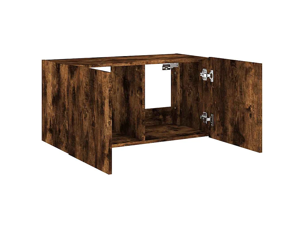 Meuble TV mural avec lumières LED chêne fumé 80x35x41 cm