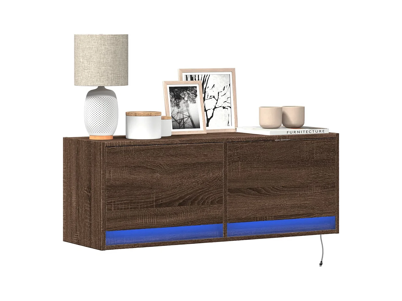 Meuble TV mural avec lumières LED chêne marron 100x31x45 cm