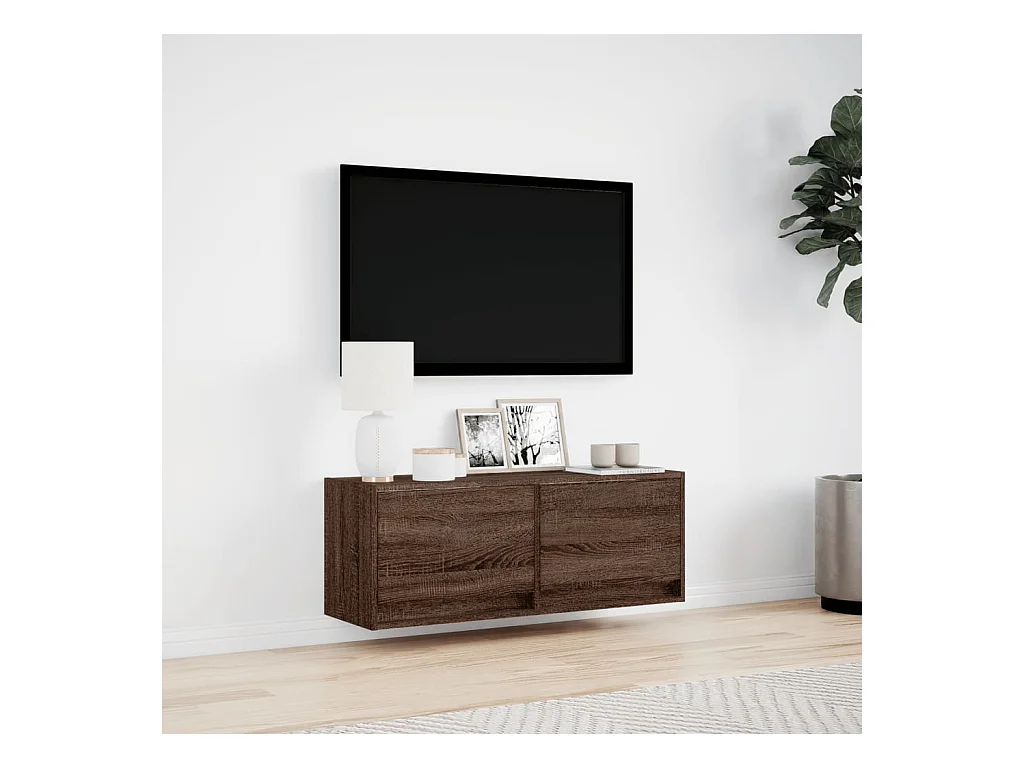 Meuble TV mural avec lumières LED chêne marron 100x31x35 cm