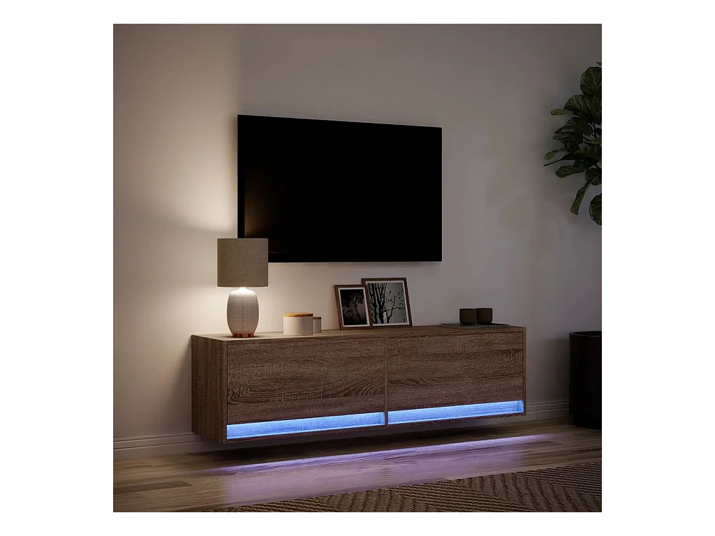 Meuble TV mural avec lumières LED chêne sonoma 140x31x38 cm