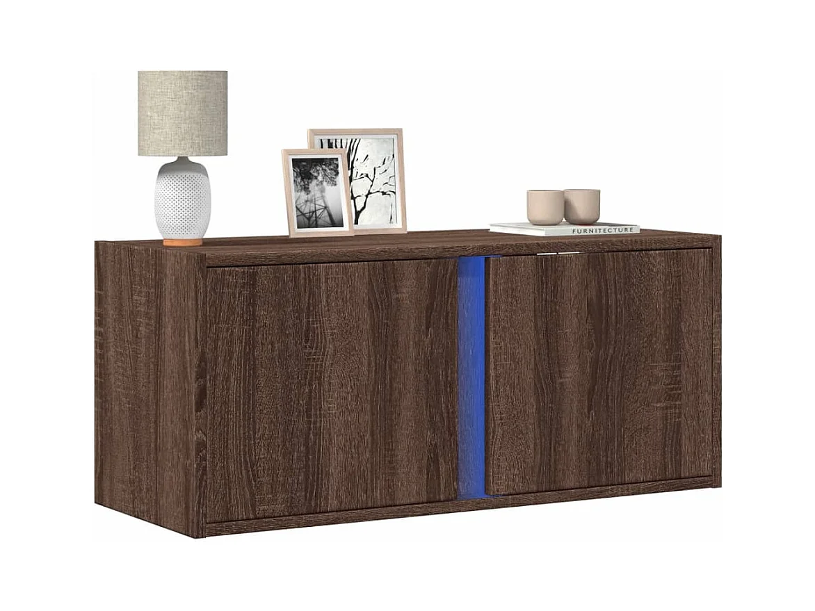 Meuble TV mural avec lumières LED chêne marron 100x31x35 cm