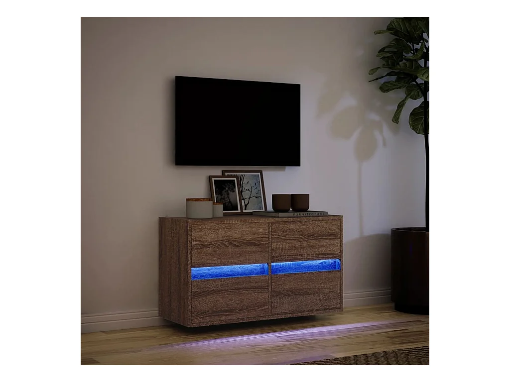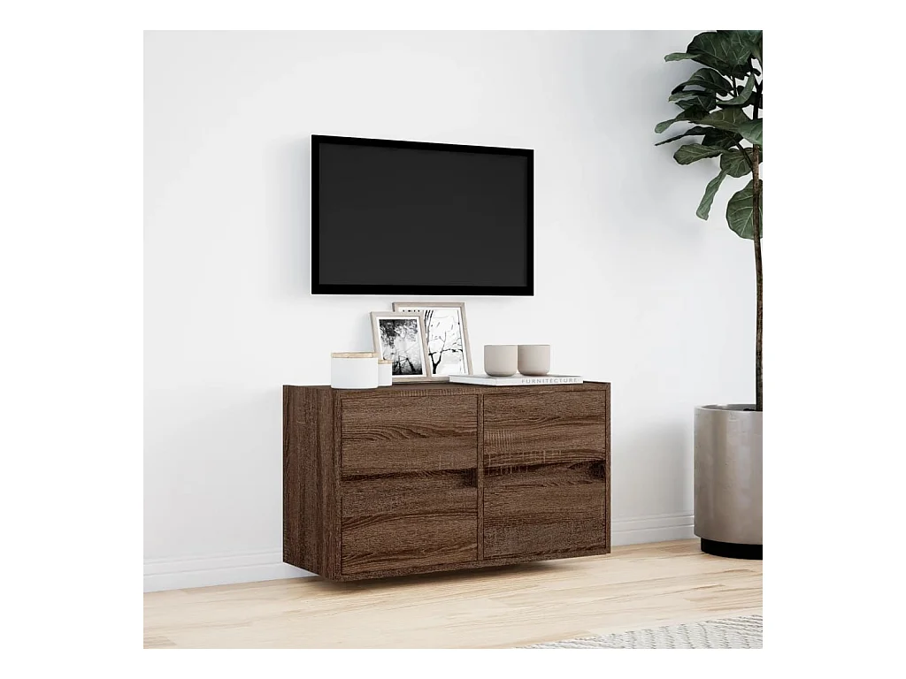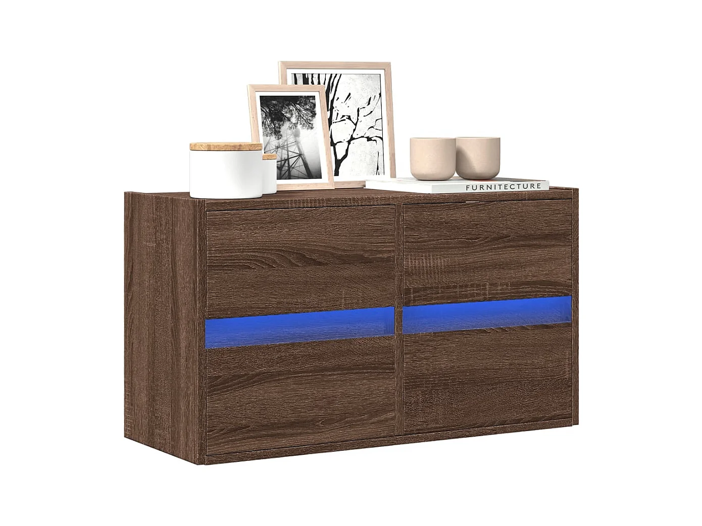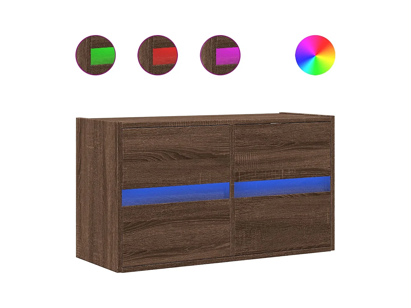 Meuble TV mural avec lumières LED chêne marron 80x31x35 cm