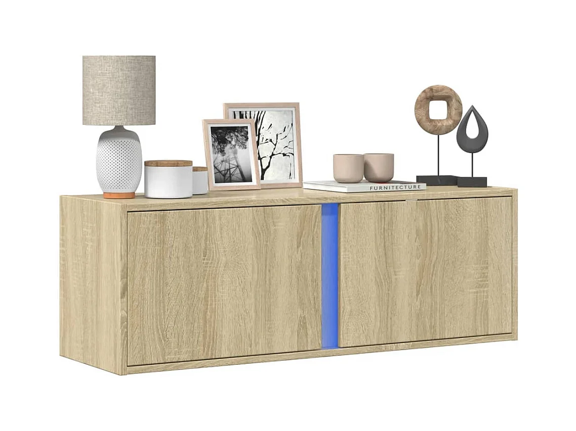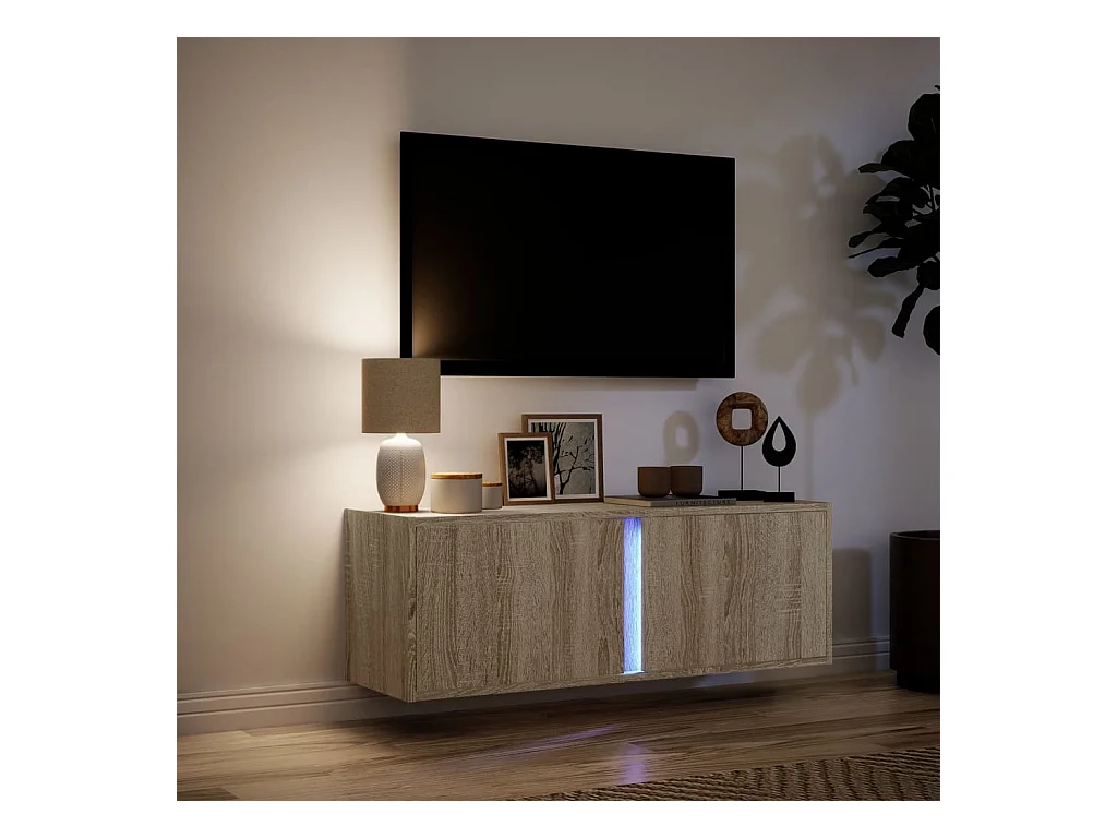 Meuble TV mural avec lumières LED chêne sonoma 100x31x45 cm