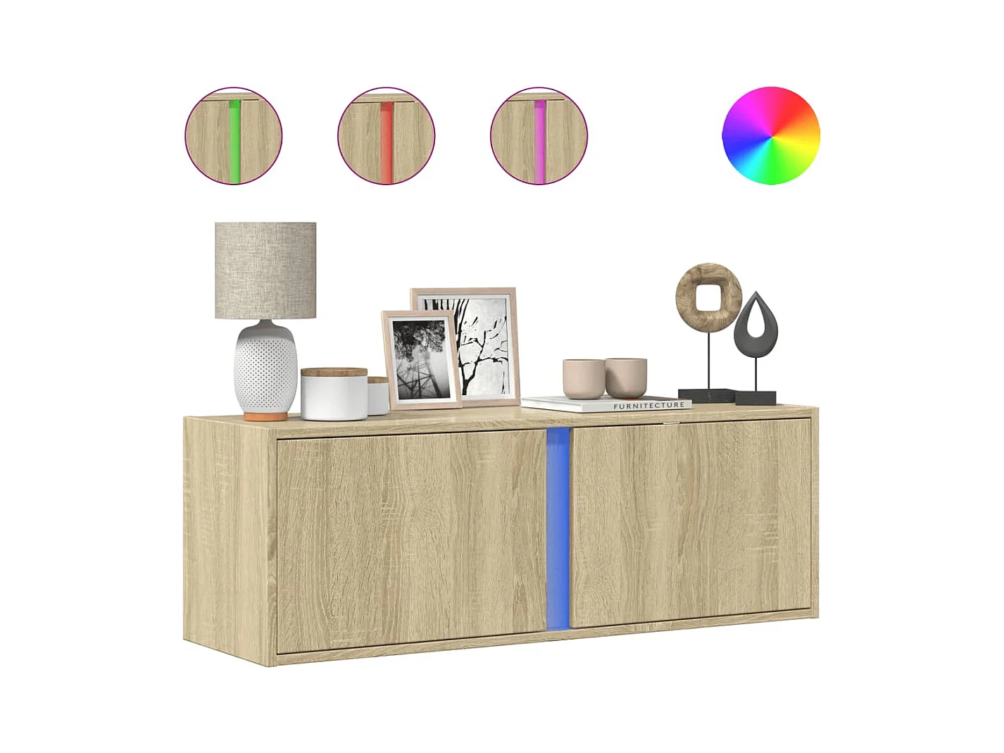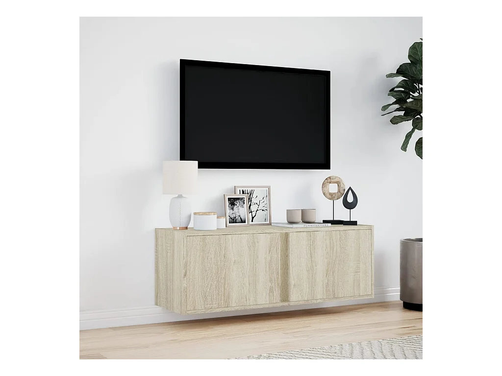 Meuble TV mural avec lumières LED chêne sonoma 100x31x35 cm
