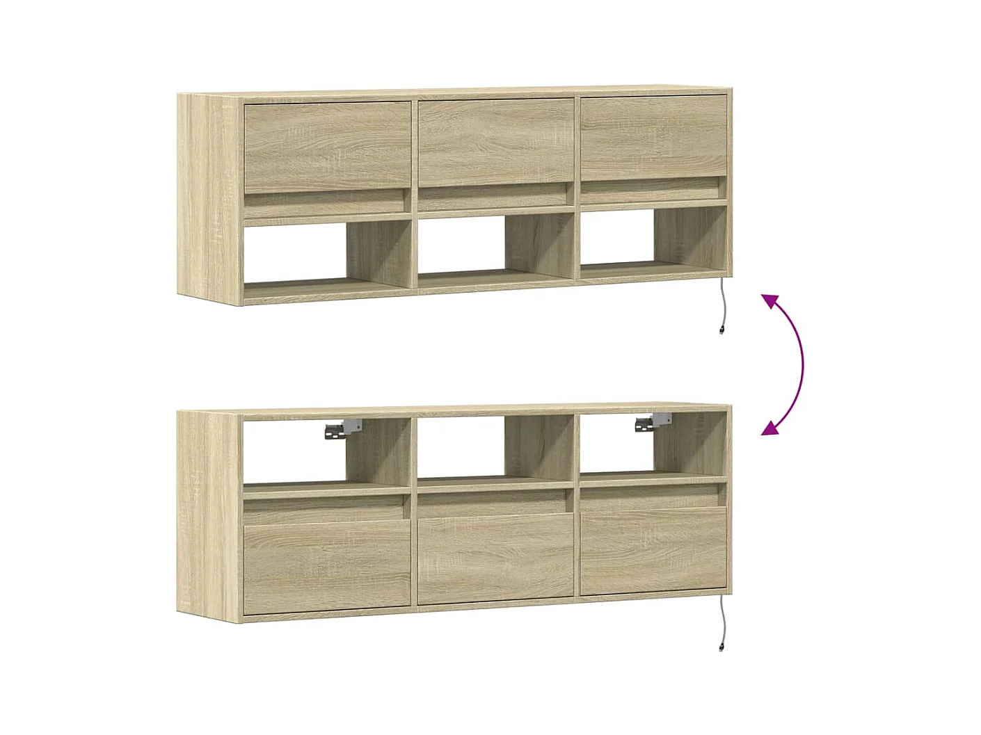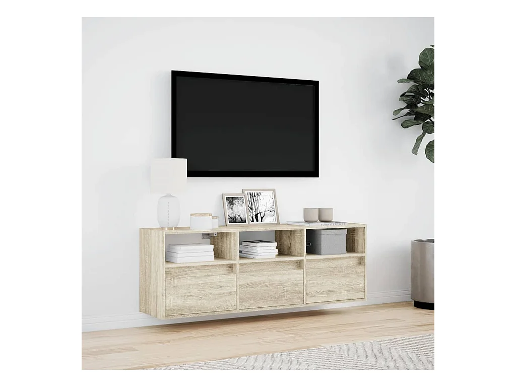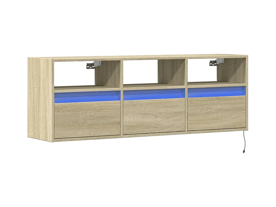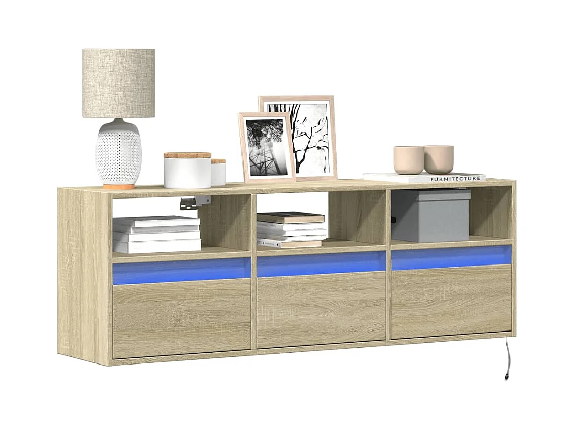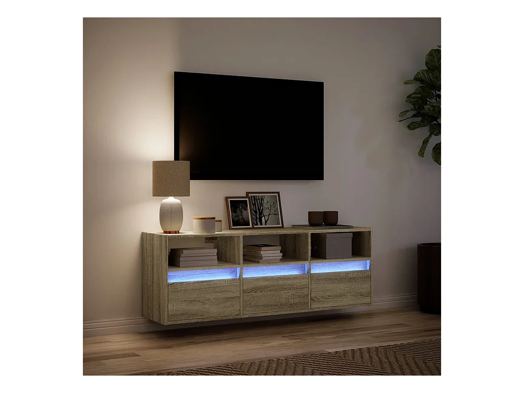 Meuble TV mural avec lumières LED chêne sonoma 130x31x45 cm
