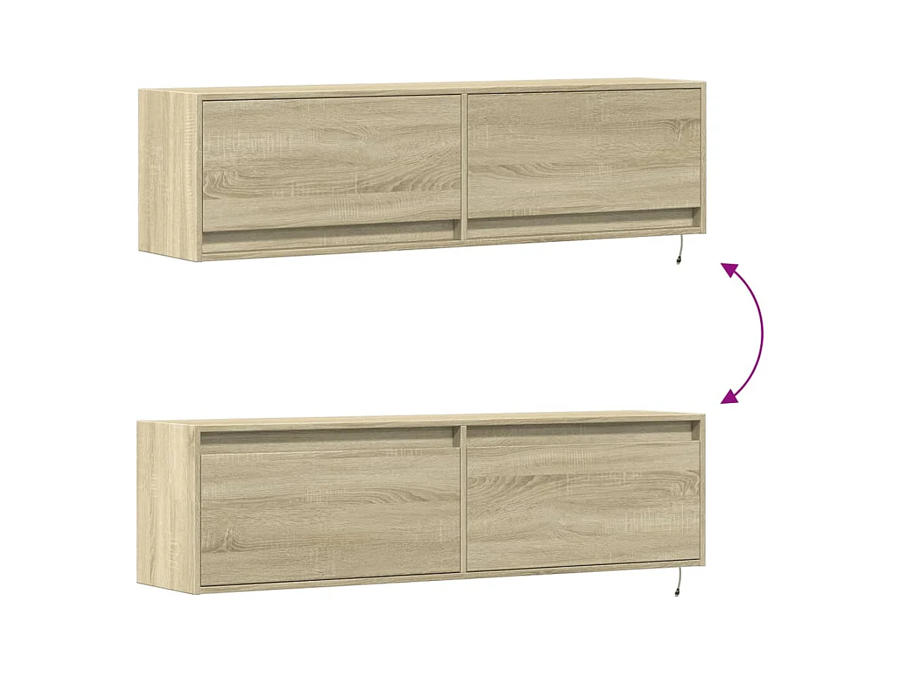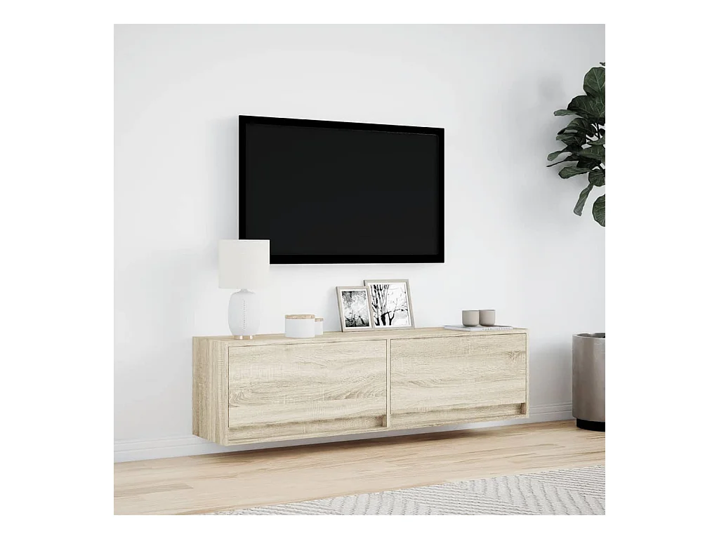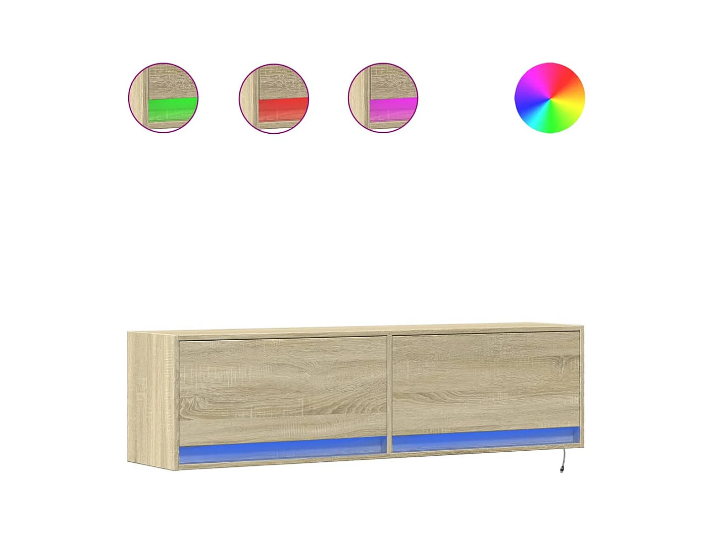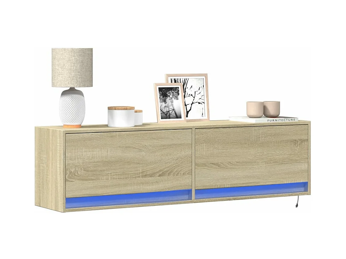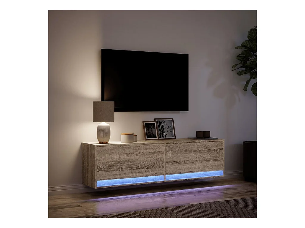 Meuble TV mural avec lumières LED chêne sonoma 140x31x38 cm