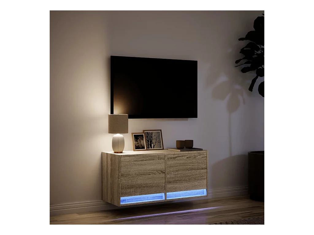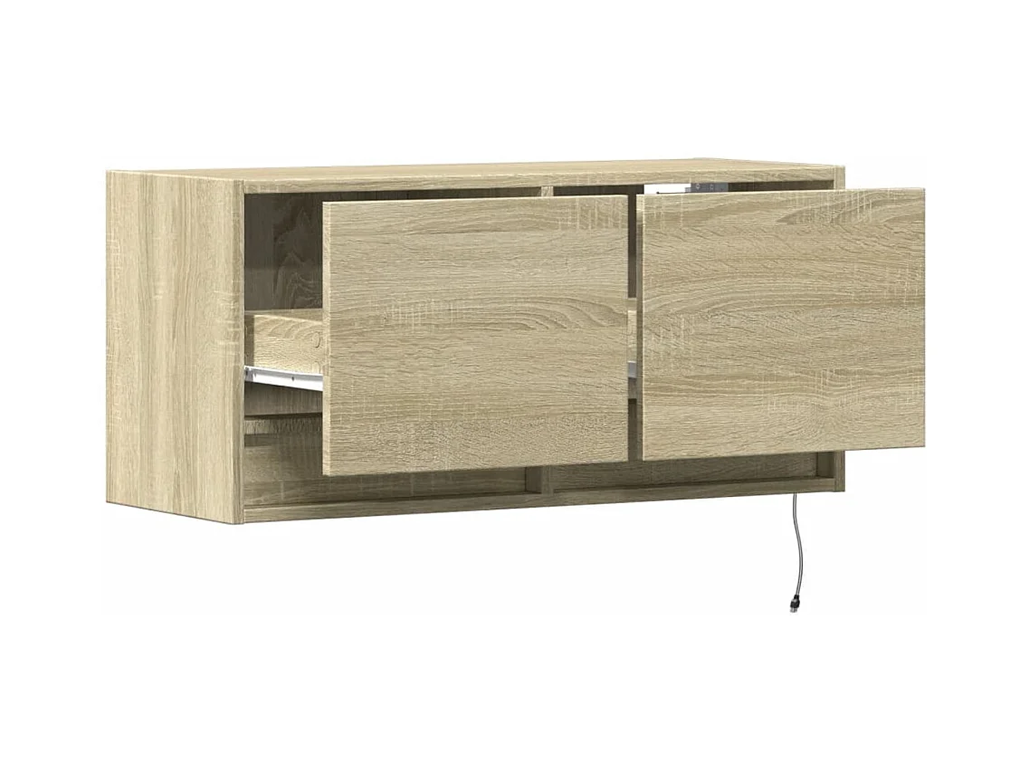 Meuble TV mural avec lumières LED chêne sonoma 80x31x35 cm
