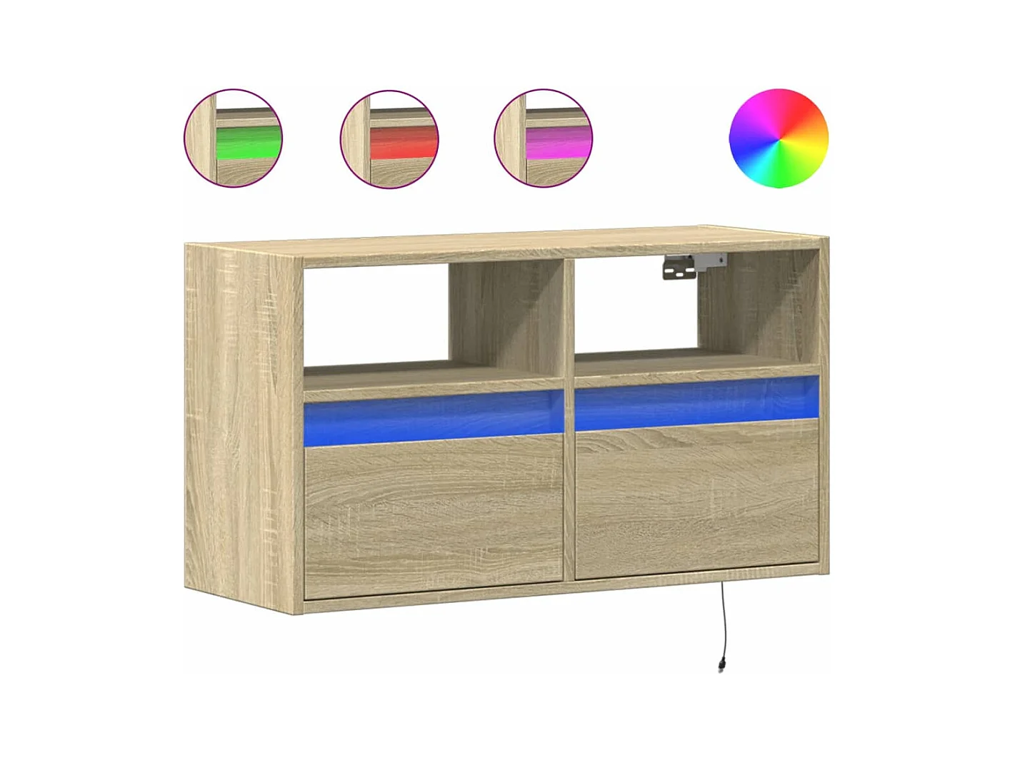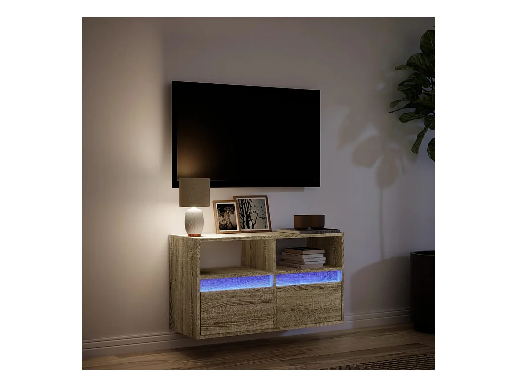 Meuble TV mural avec lumières LED chêne sonoma 80x31x45 cm