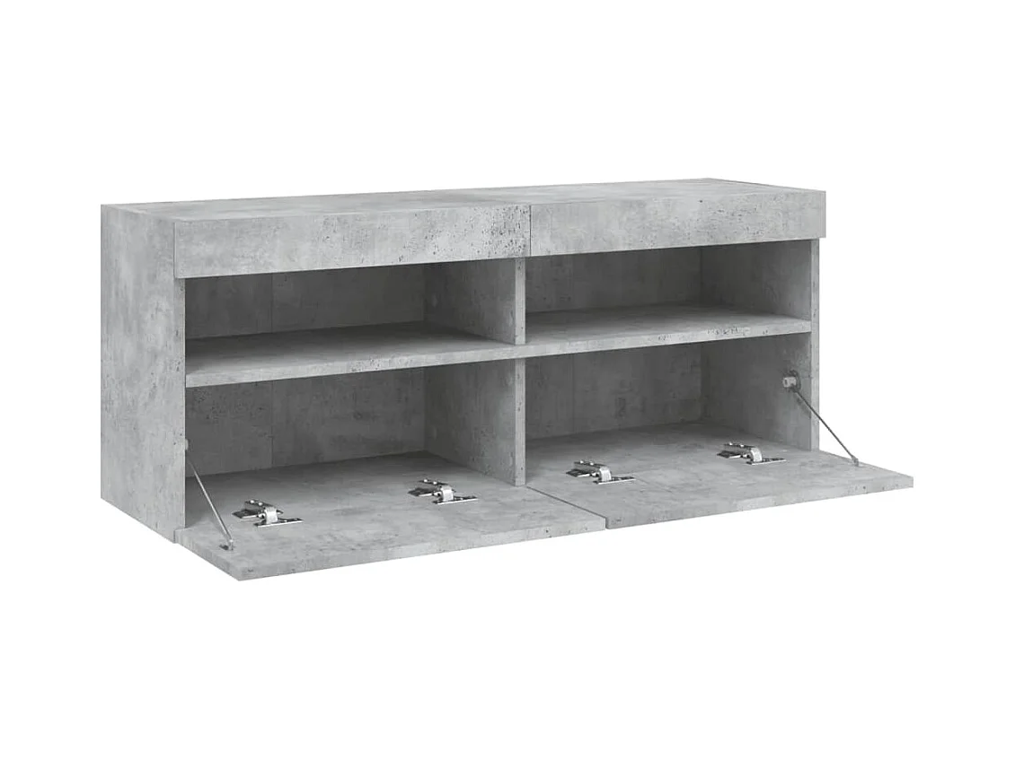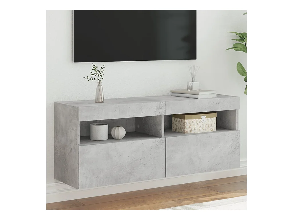 Meuble TV mural avec lumières LED gris béton 100x30x40 cm