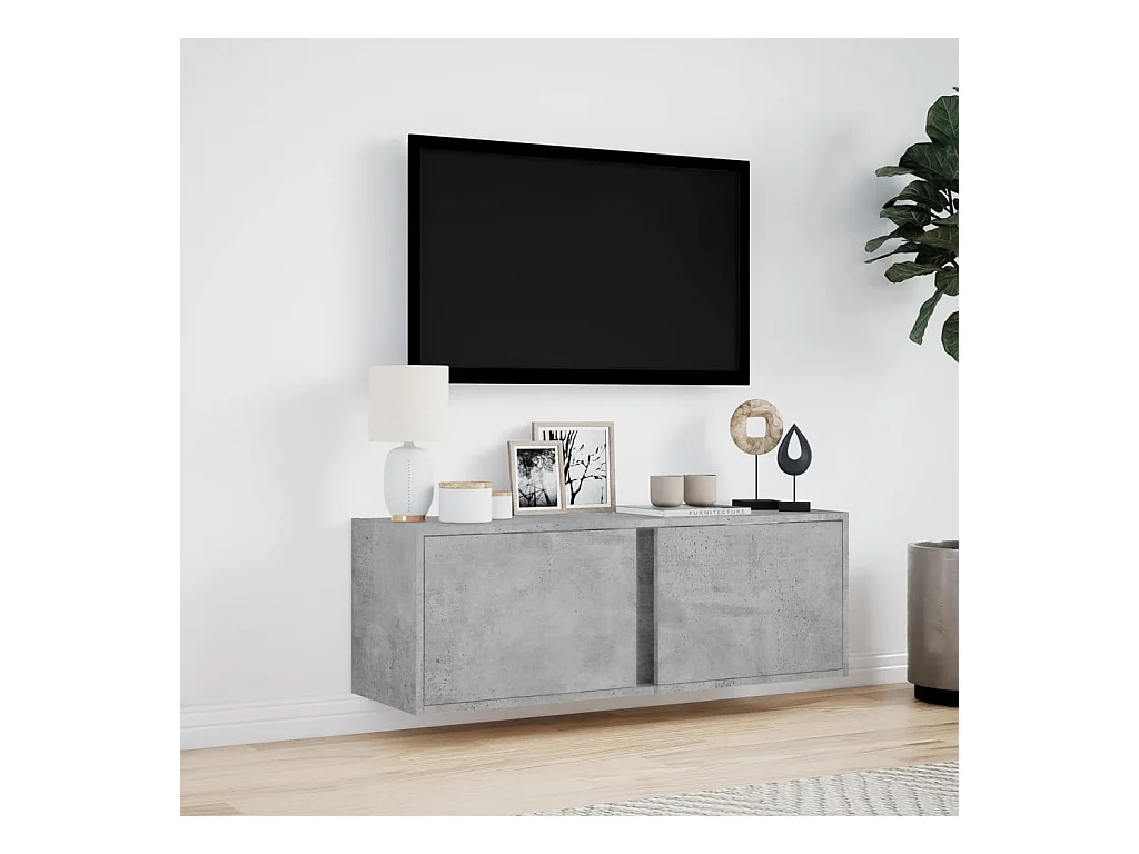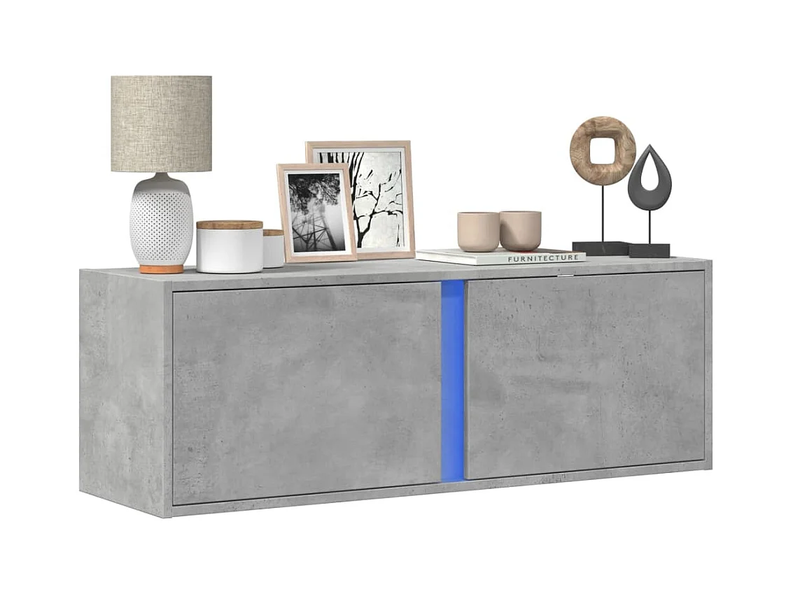 Meuble TV mural avec lumières LED gris béton 100x31x45 cm