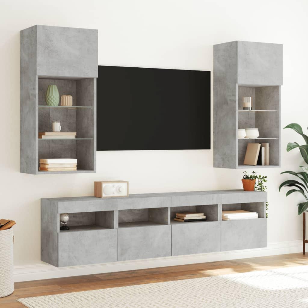 Meuble TV mural avec lumières LED gris béton 40x30x40 cm