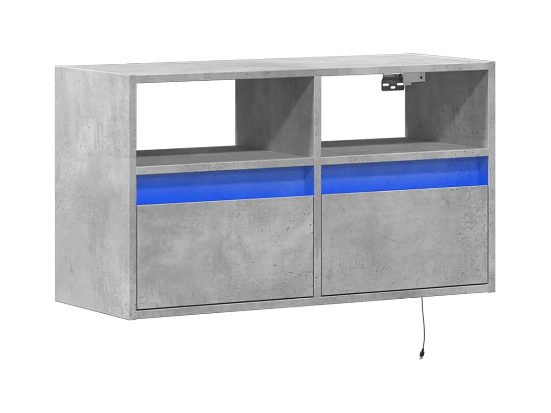 Meuble TV mural avec lumières LED gris béton 80x31x45 cm