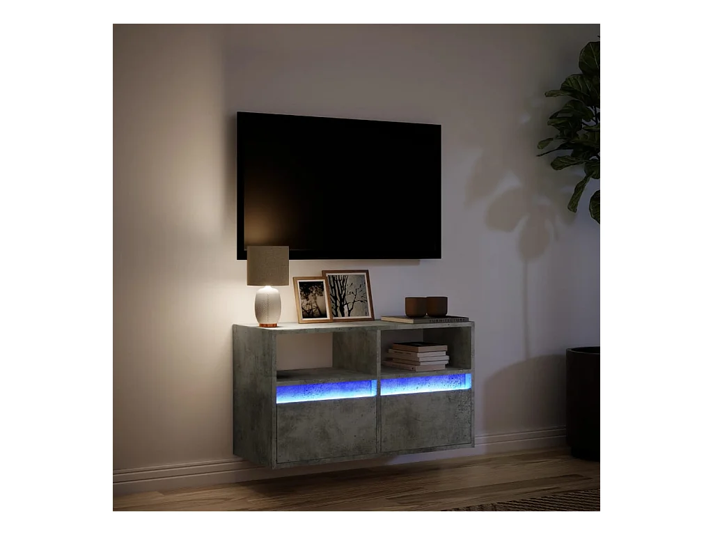 Meuble TV mural avec lumières LED gris béton 100x31x45 cm