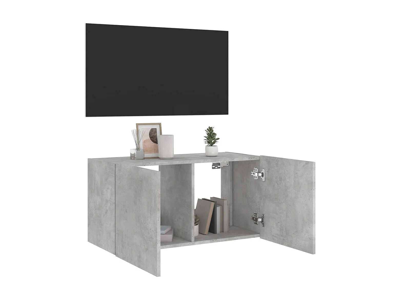 Meuble TV mural avec lumières LED gris béton 80x35x41 cm
