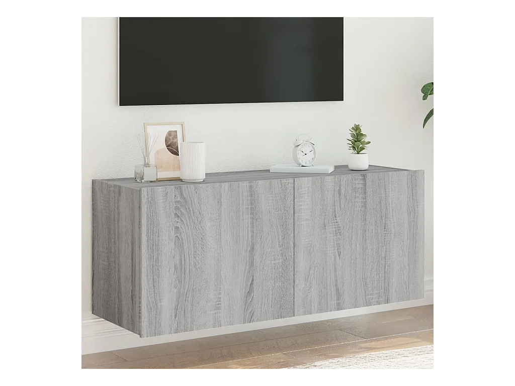 Meuble TV mural avec lumières LED sonoma gris 100x35x41 cm WET9362