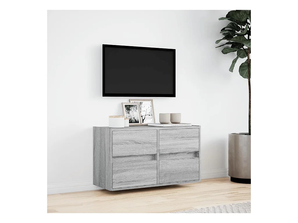 Meuble TV mural avec lumières LED sonoma gris 80x31x35 cm