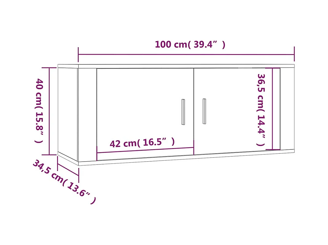 Meubles TV muraux 2 pcs chêne fumé 100x34,5x40 cm