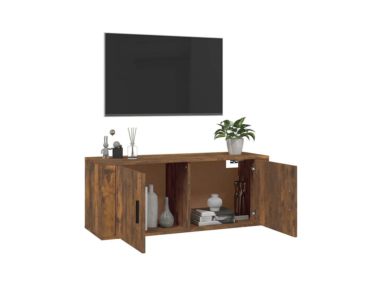 Meuble TV mural Chêne fumé 100x34,5x40 cm