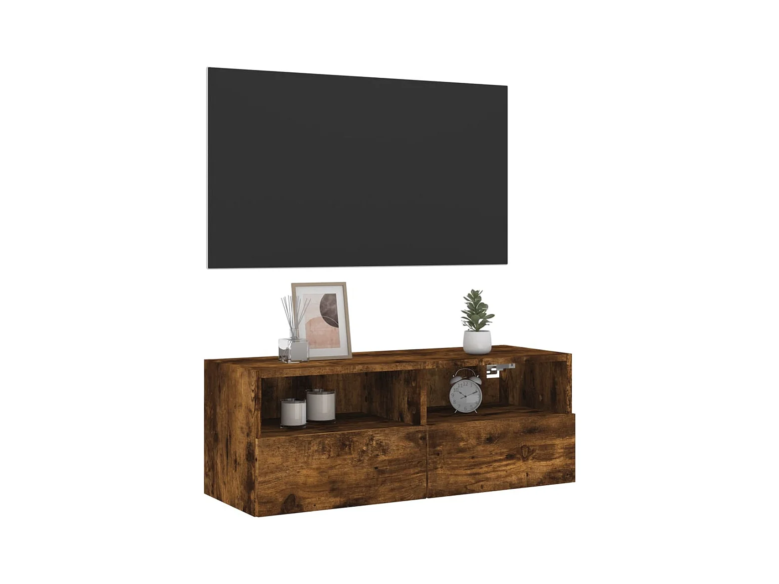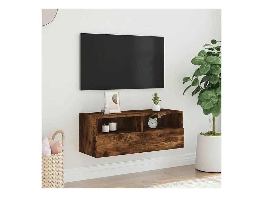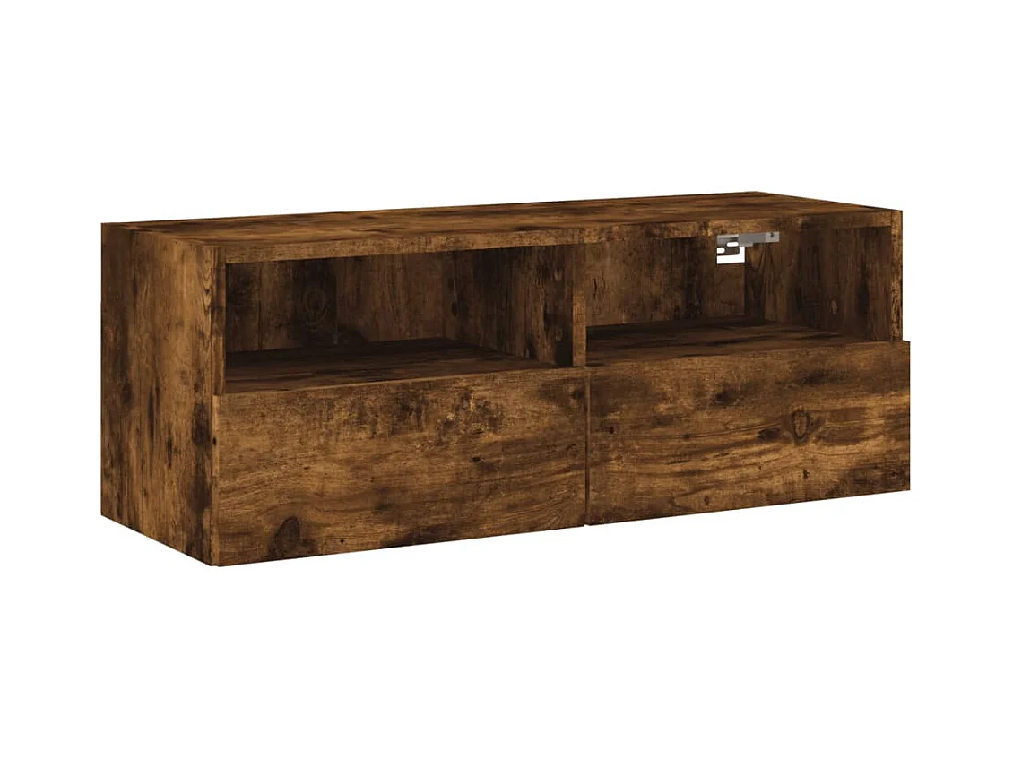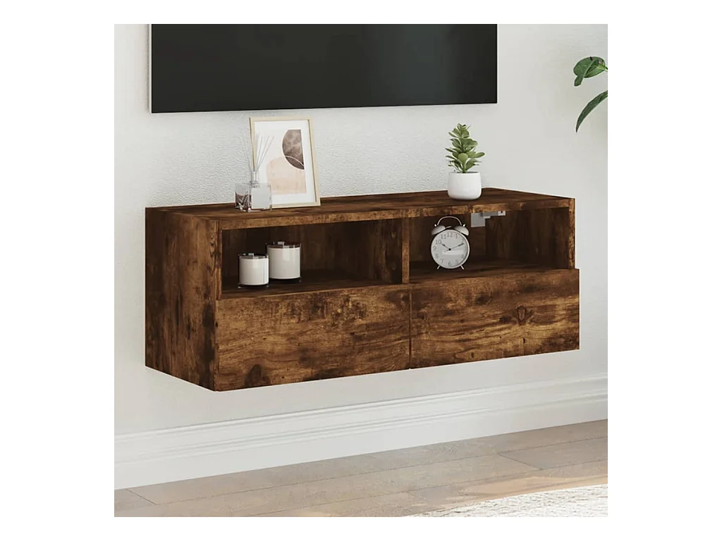 Meuble TV mural chêne fumé 80x30x30 cm bois d'ingénierie