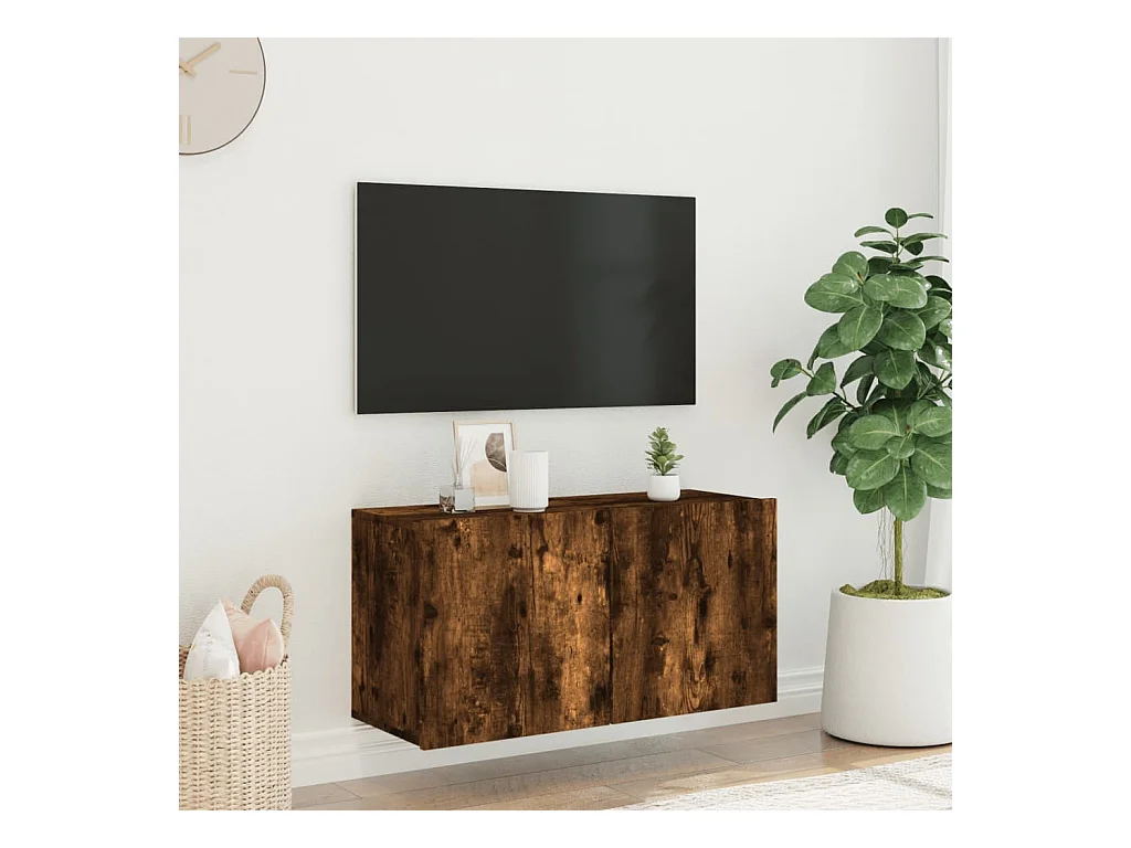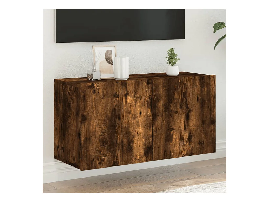 Meuble TV mural chêne fumé 80x30x30 cm bois d'ingénierie