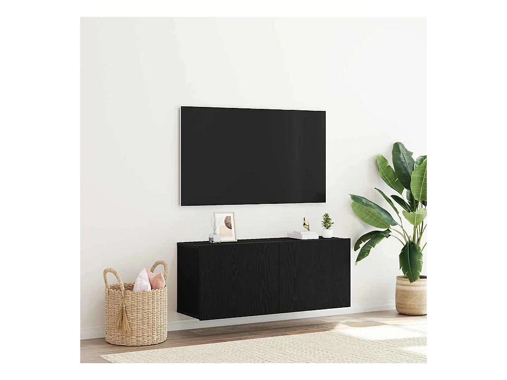 Meuble TV mural en chêne noir 100x30x30 cm en bois reconstitué