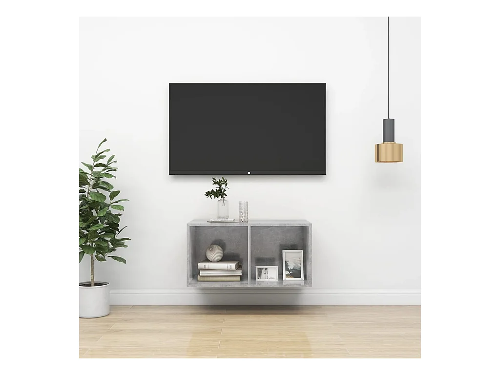 Meuble TV mural Gris béton 37x37x72 cm Bois d’ingénierie