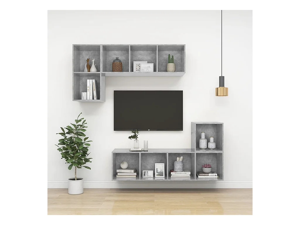 Meuble TV mural Gris béton 37x37x142,5 cm Bois d’ingénierie