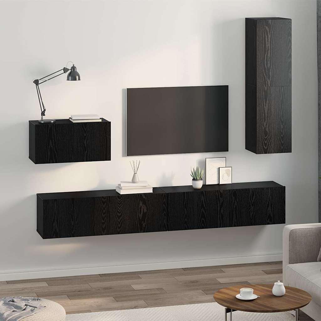 Ensemble meuble TV Montage mural 5 pièces Chêne noir