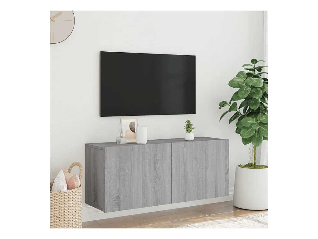 Meuble TV mural sonoma gris 100x30x30 cm bois d'ingénierie WET3110