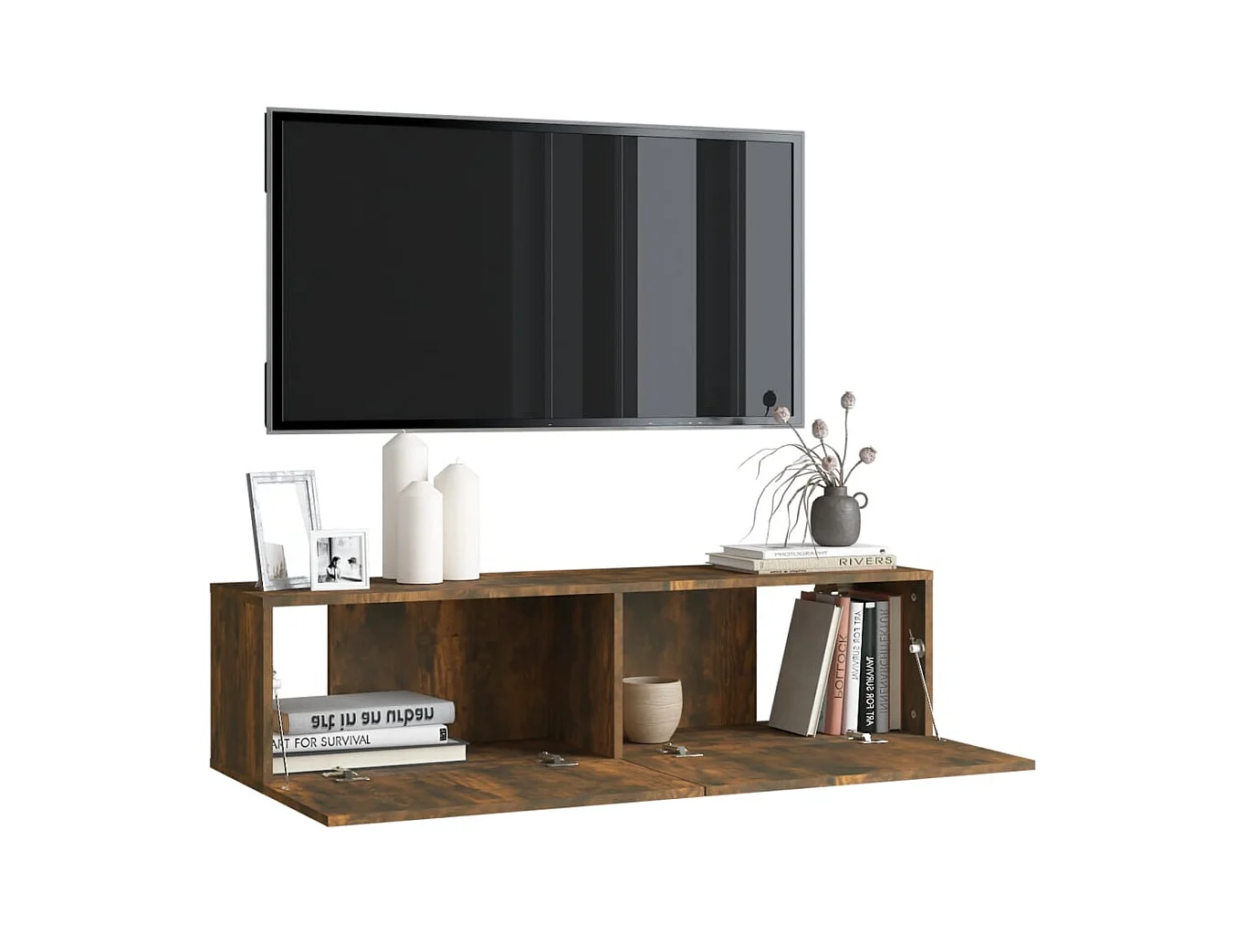 Meuble TV murale Chêne fumé 120x30x30 cm Bois d'ingénierie FR18564