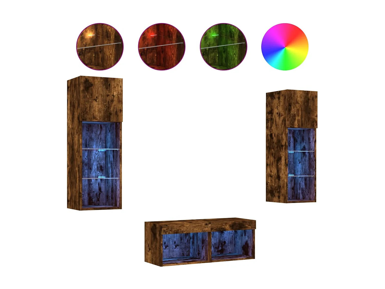 Unités murales TV avec LED 5 pcs chêne fumé bois d'ingénierie