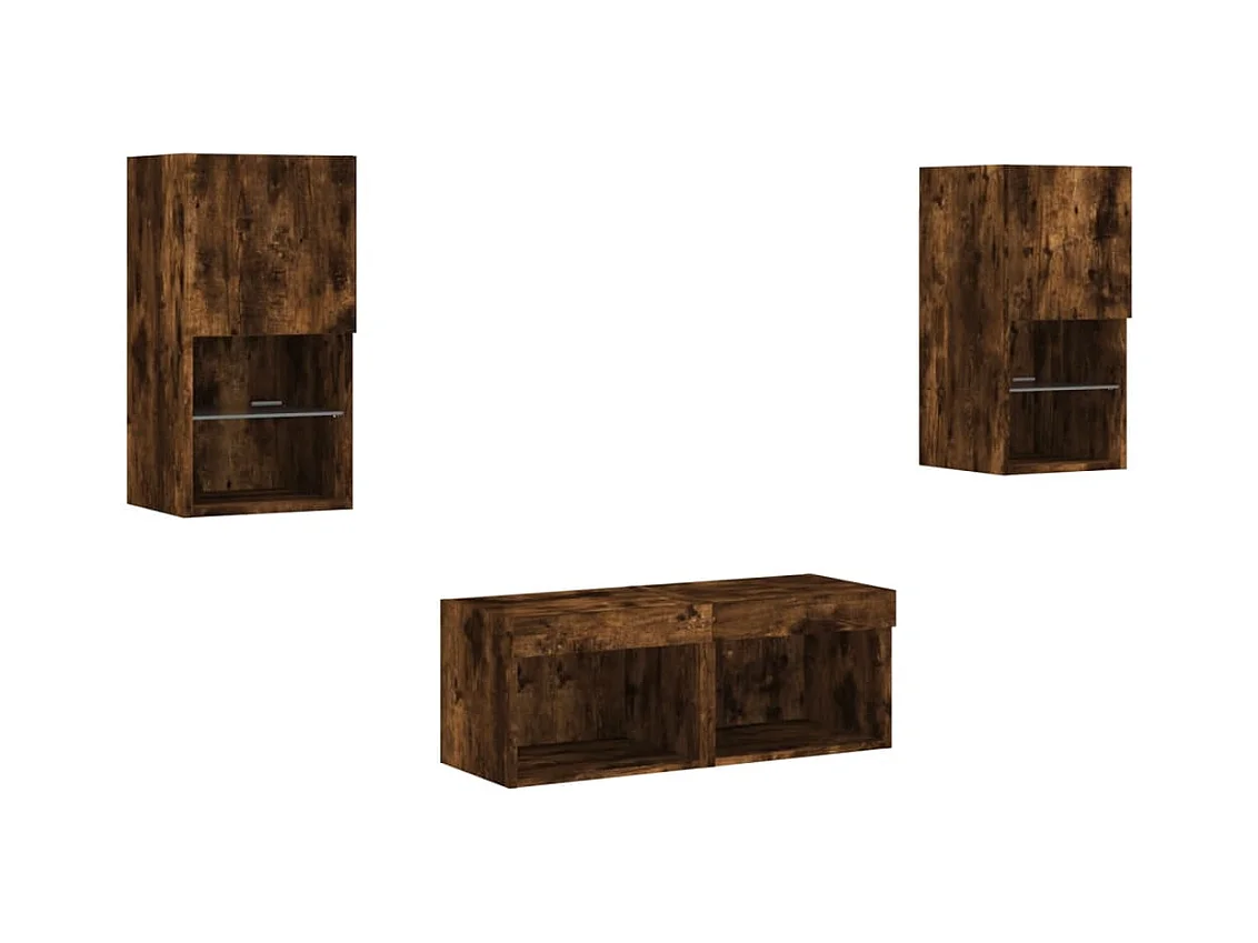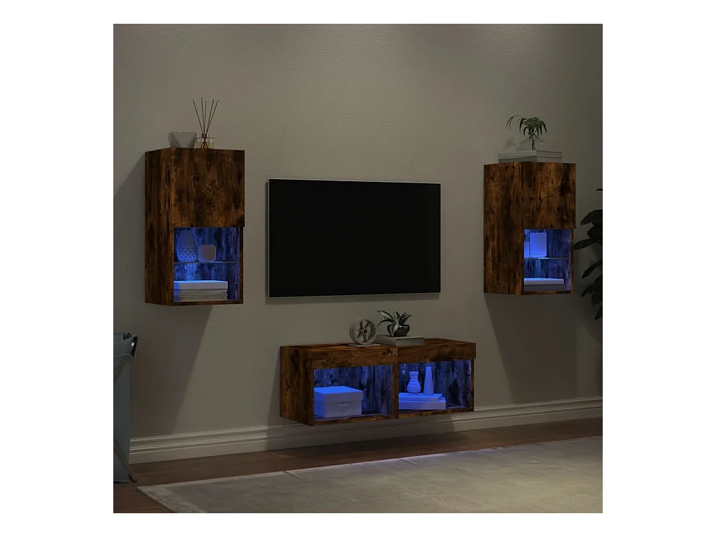 Meuble TV muraux 4 pcs avec lumières LED chêne fumé WET3123